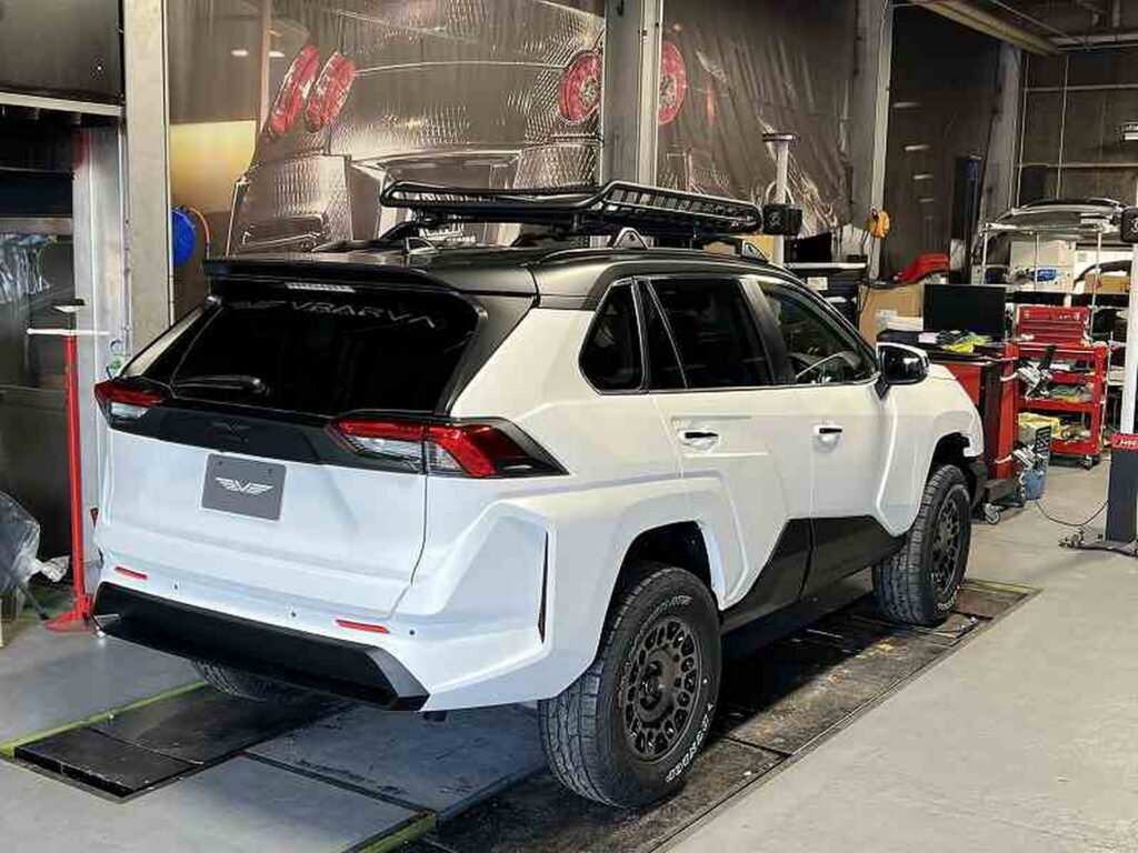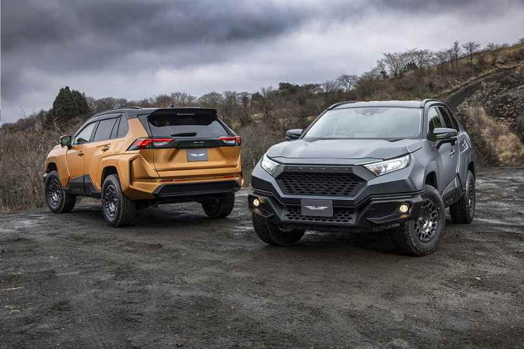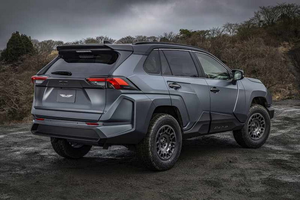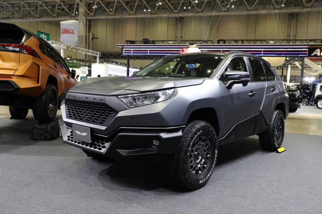 تأتي تويوتا راف 4 بتصميم خارجي محدث بالكامل بفضل التعزيزات العضلية المتعددة من شركة كول اليابانية، بدءاً بالمصد الأمامي باللون الأسود مع حصولها على شبكة هوائية وغطاء محرك وأقواس عجلات أمامية بتصميم جديد، وتحتفظ راف 4 فقط بالمصابيح الأمامية بدون تغيير بمقدمة السيارة.