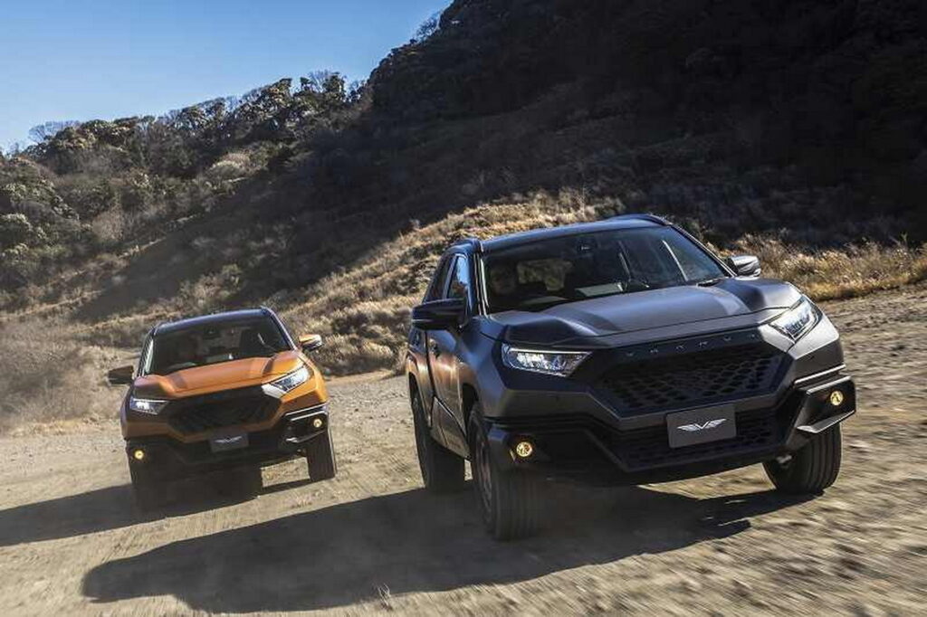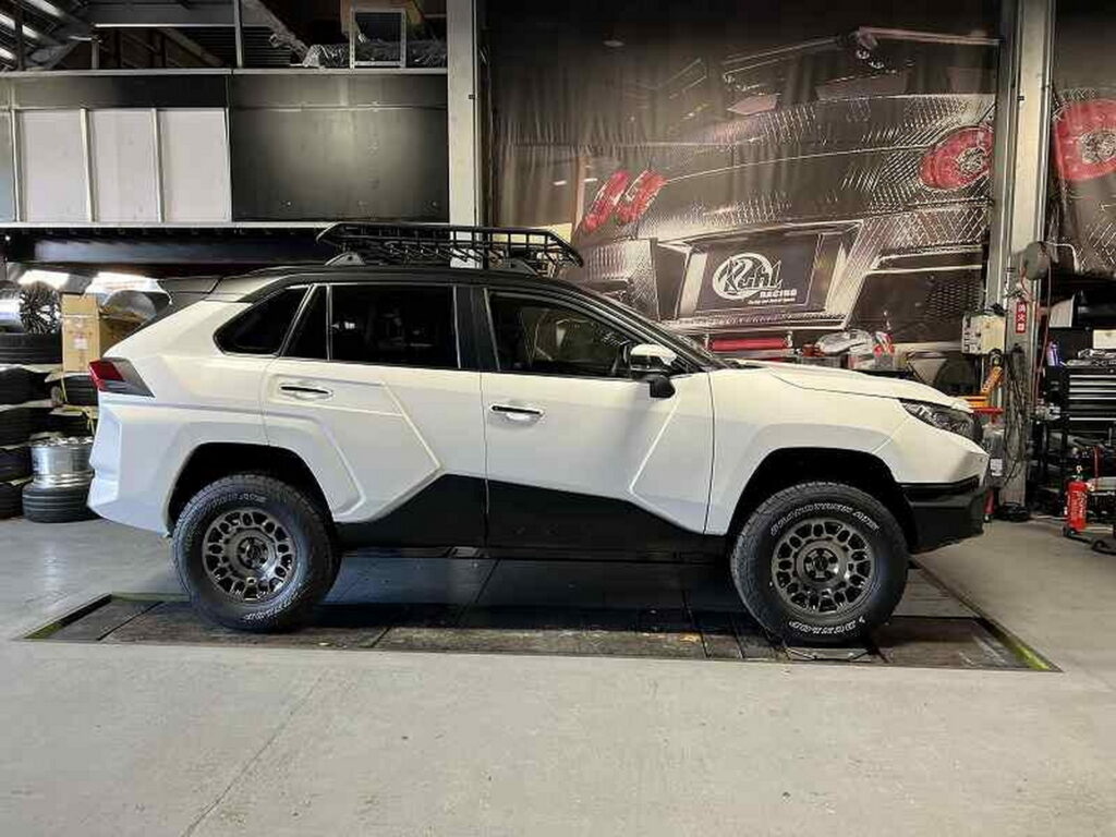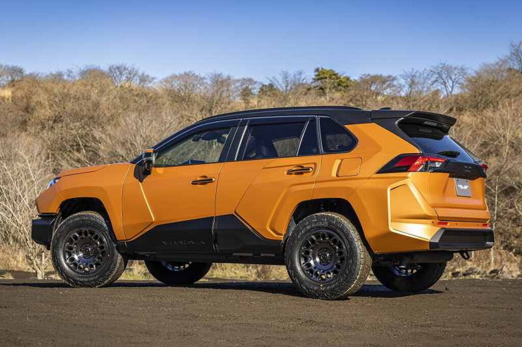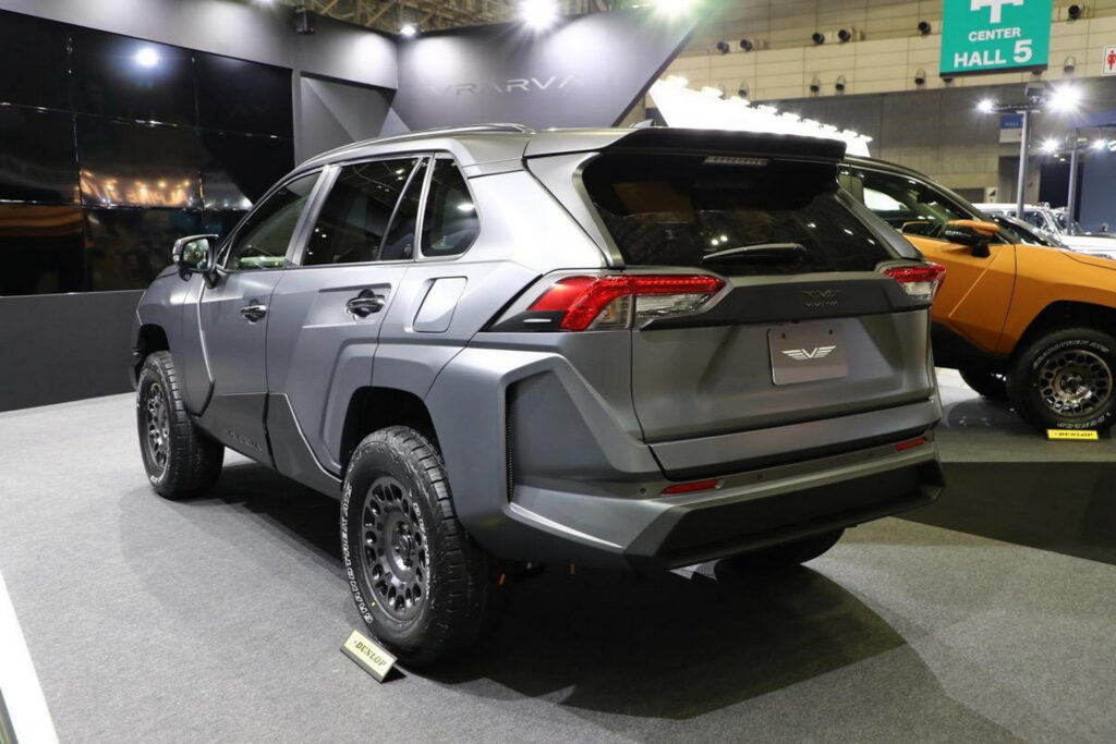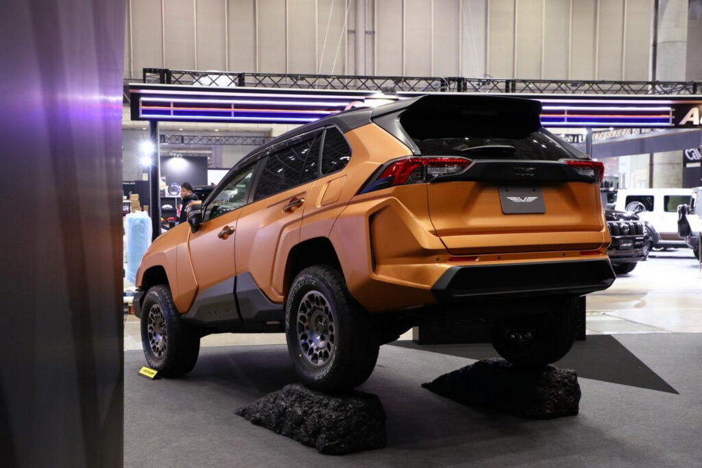 تأتي تويوتا راف 4 بتصميم خارجي محدث بالكامل بفضل التعزيزات العضلية المتعددة من شركة كول اليابانية، بدءاً بالمصد الأمامي باللون الأسود مع حصولها على شبكة هوائية وغطاء محرك وأقواس عجلات أمامية بتصميم جديد، وتحتفظ راف 4 فقط بالمصابيح الأمامية بدون تغيير بمقدمة السيارة.