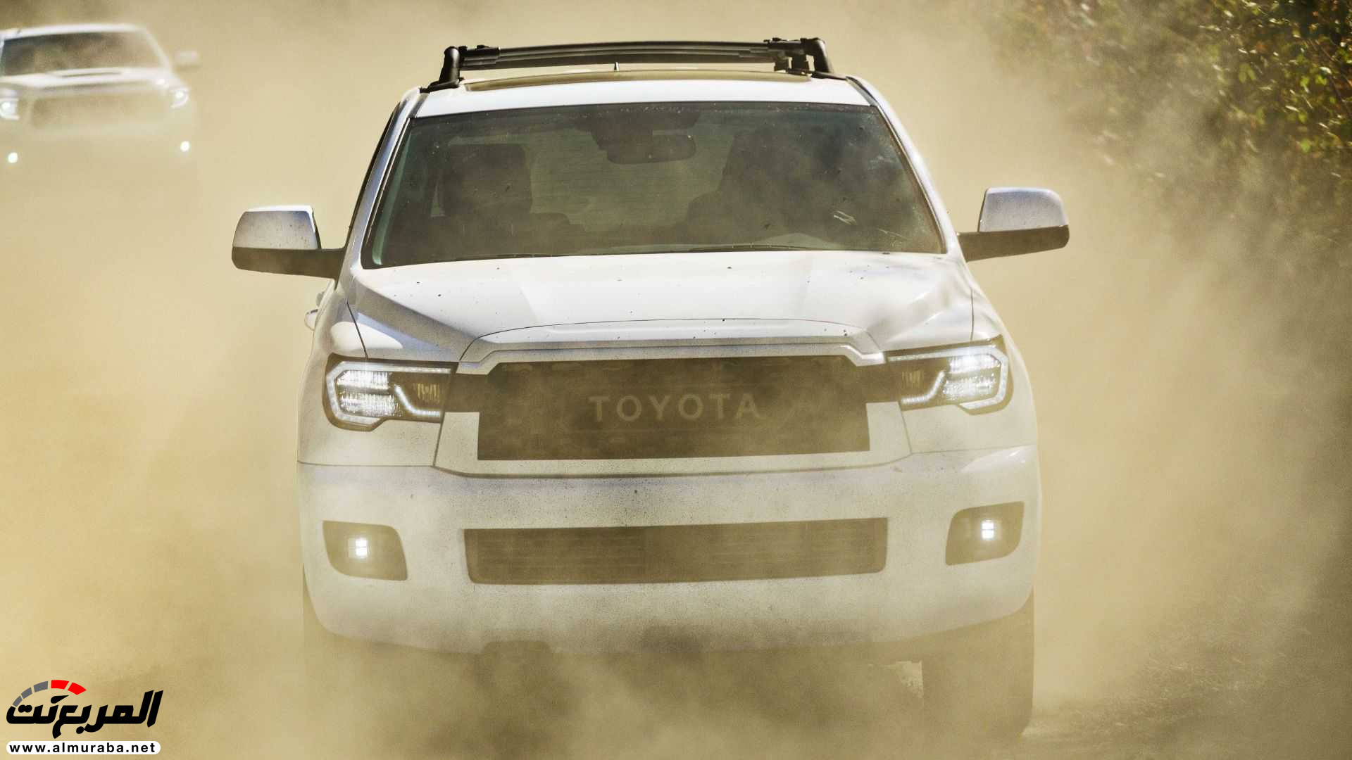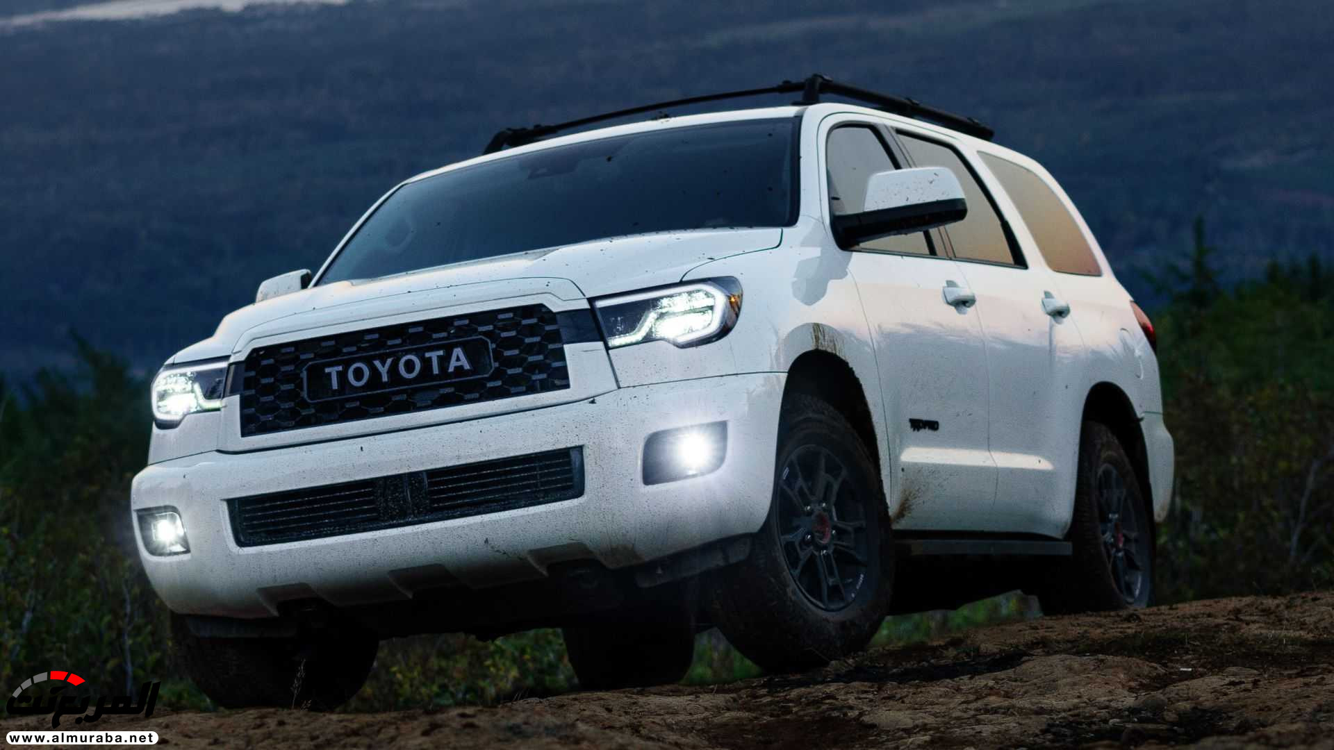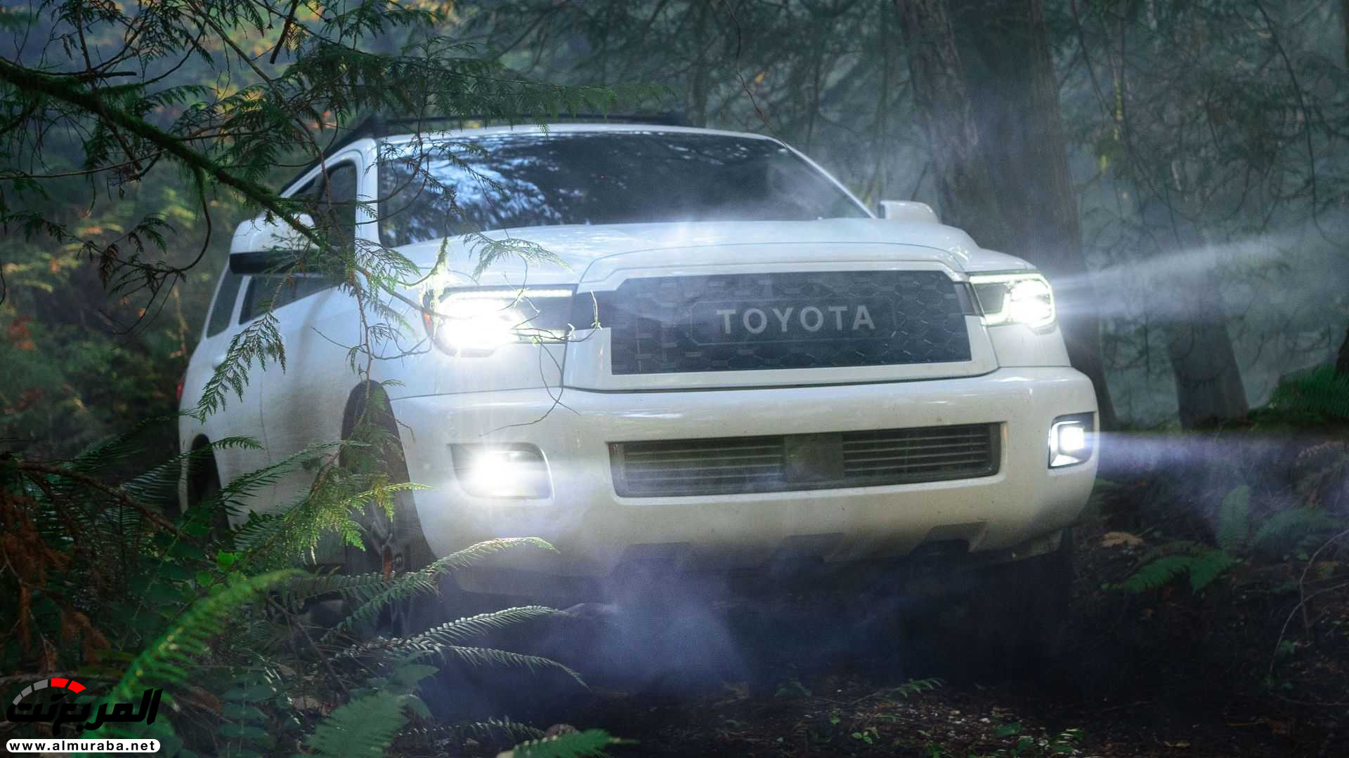 تأتي سيكويا TRD برو بكتابة TOYOTA على شبكها الذي بات أسوداً، جنوط 18.8 إنش للطرق الوعرة، مصابيح أمامية وضباب LED.