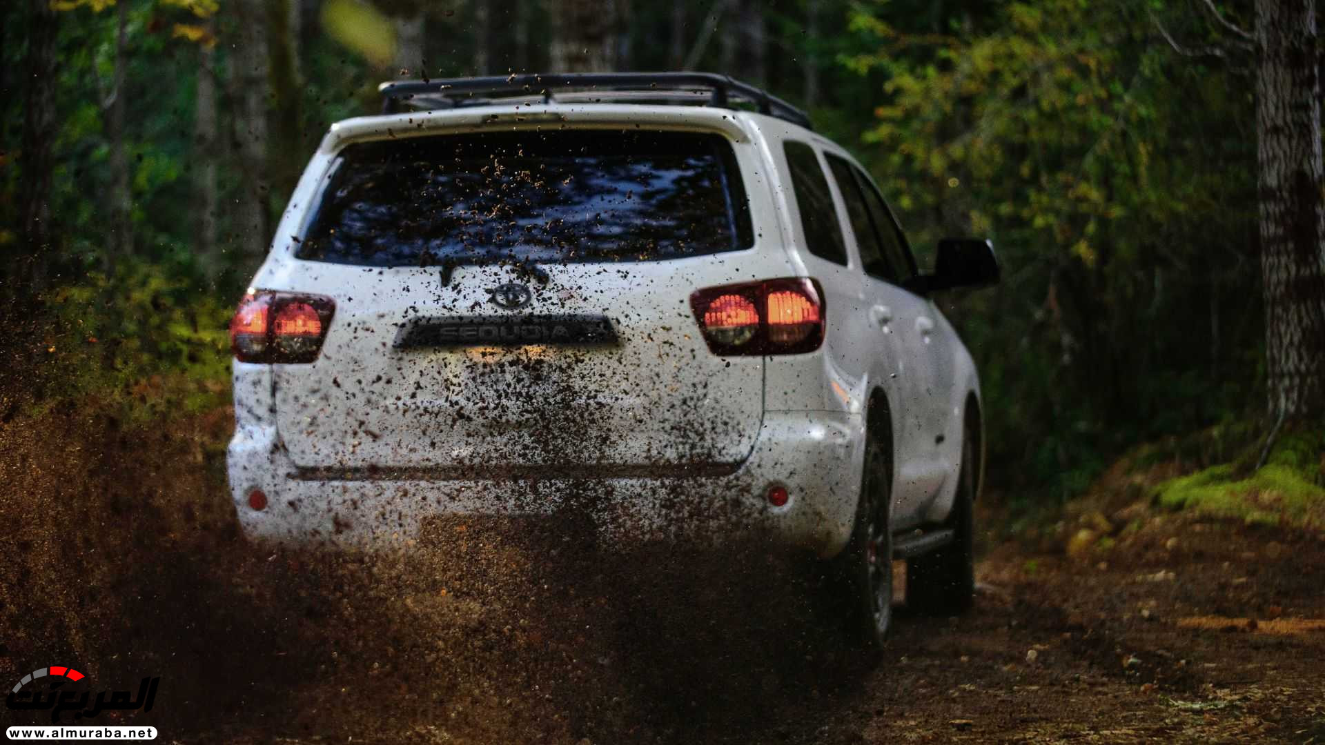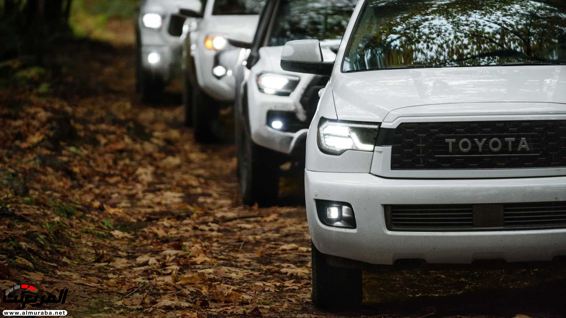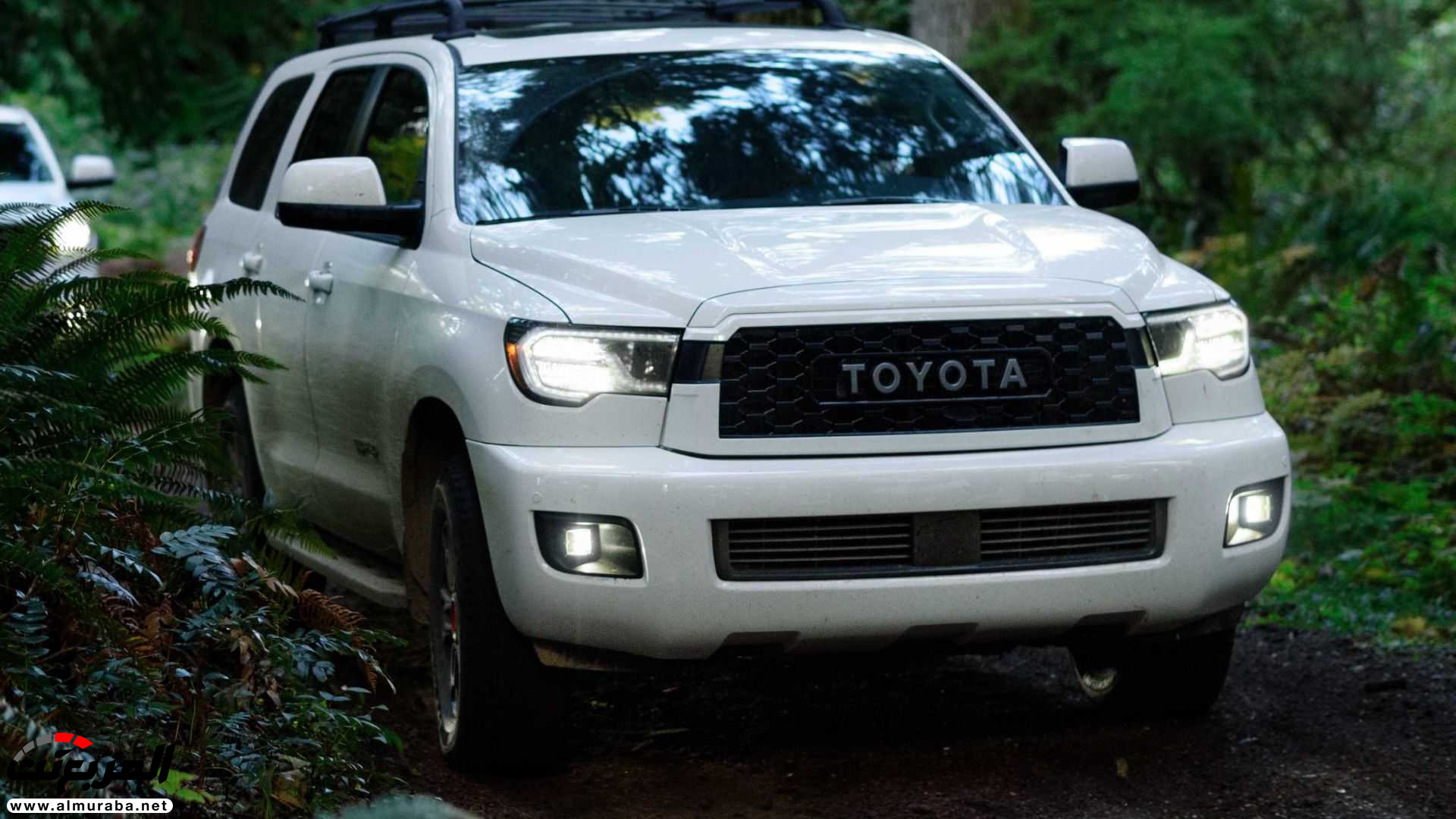 تأتي سيكويا TRD برو بكتابة TOYOTA على شبكها الذي بات أسوداً، جنوط 18.8 إنش للطرق الوعرة، مصابيح أمامية وضباب LED.