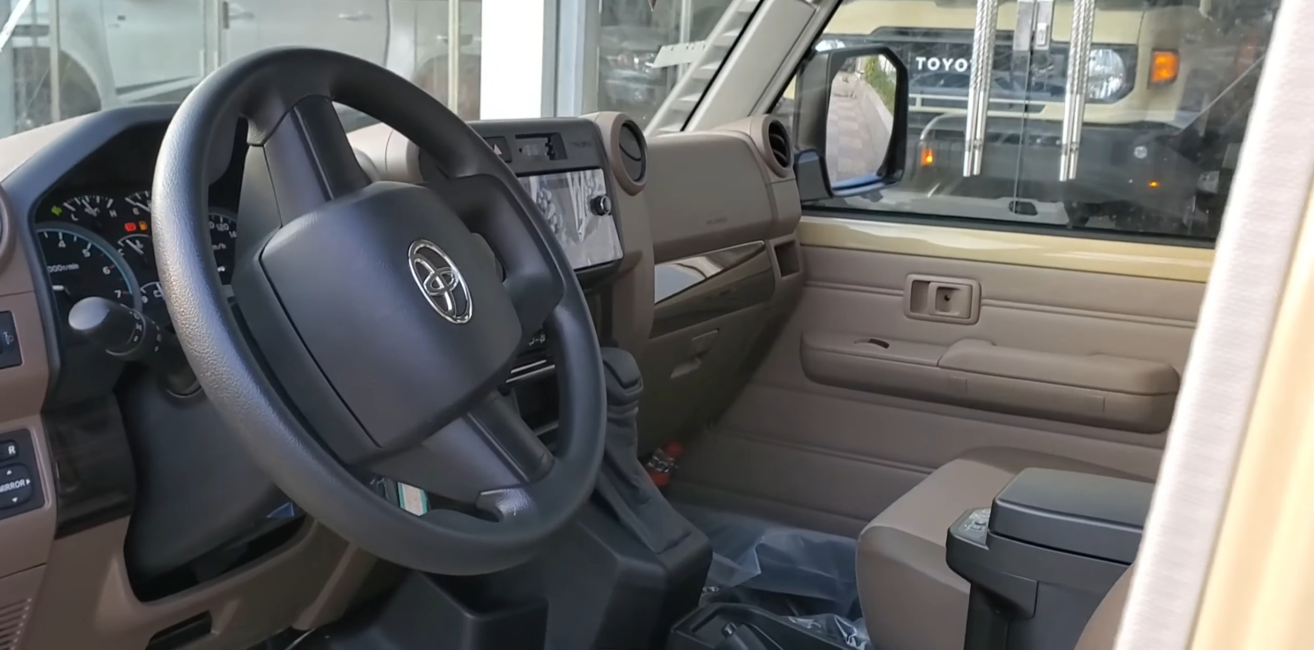 9- مكيف أمامى بتحكم يدوى، والمقود مع أزرار تحكم ومغلف باليوريثين، ولا توجد ثلاجة في الداخلية.