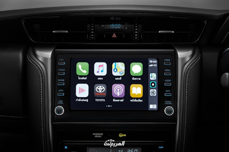 نصل بهذا الجزء للحديث حول توظيف التكنولوجيا في تويوتا فورتشنر 2022، فتأتي السيارة مع النظام الترفيهي بشاشة عاملة باللمس ومقاسها 8 بوصة، أما النظام الصوتي فينضم إلى قائمة المواصفات الداخلية بالسيارة بتكونه من ست سماعات.