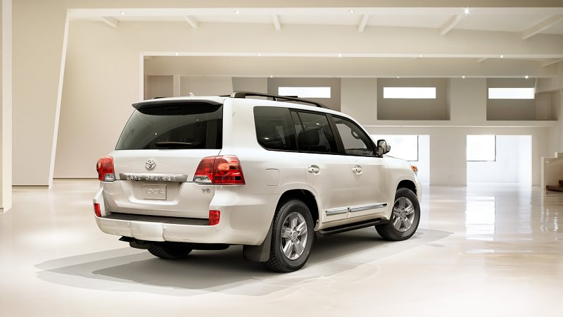 وتستند لاندكروزر على عجلات تأتي إما من الحديد مقاس 17 بوصة، أو من الألومنيوم مقاس 17 أو 18 بوصة، فيما تحصل الخلفية على مصابيح كبيرة، وخطاف خلفي لجر السيارات، بالإضافة لجناح خلفي بارز.