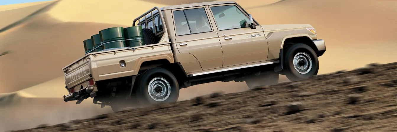 ننتقل إلى تويوتا لاندكروزر 70 2023 إصدار البيك أب، والتي تأتي كواحدة من أبرز السيارات وأكثرها تنافسية في هذه الفئة في السوق السعودي، كما أنها تعد الخيار الأمثل للقيام بالأعمال التجارية، وذلك لما تقدمه من قدرة تحمل كبيرة وكفاءة عالية ومستوى منقطع النظير من العملية.