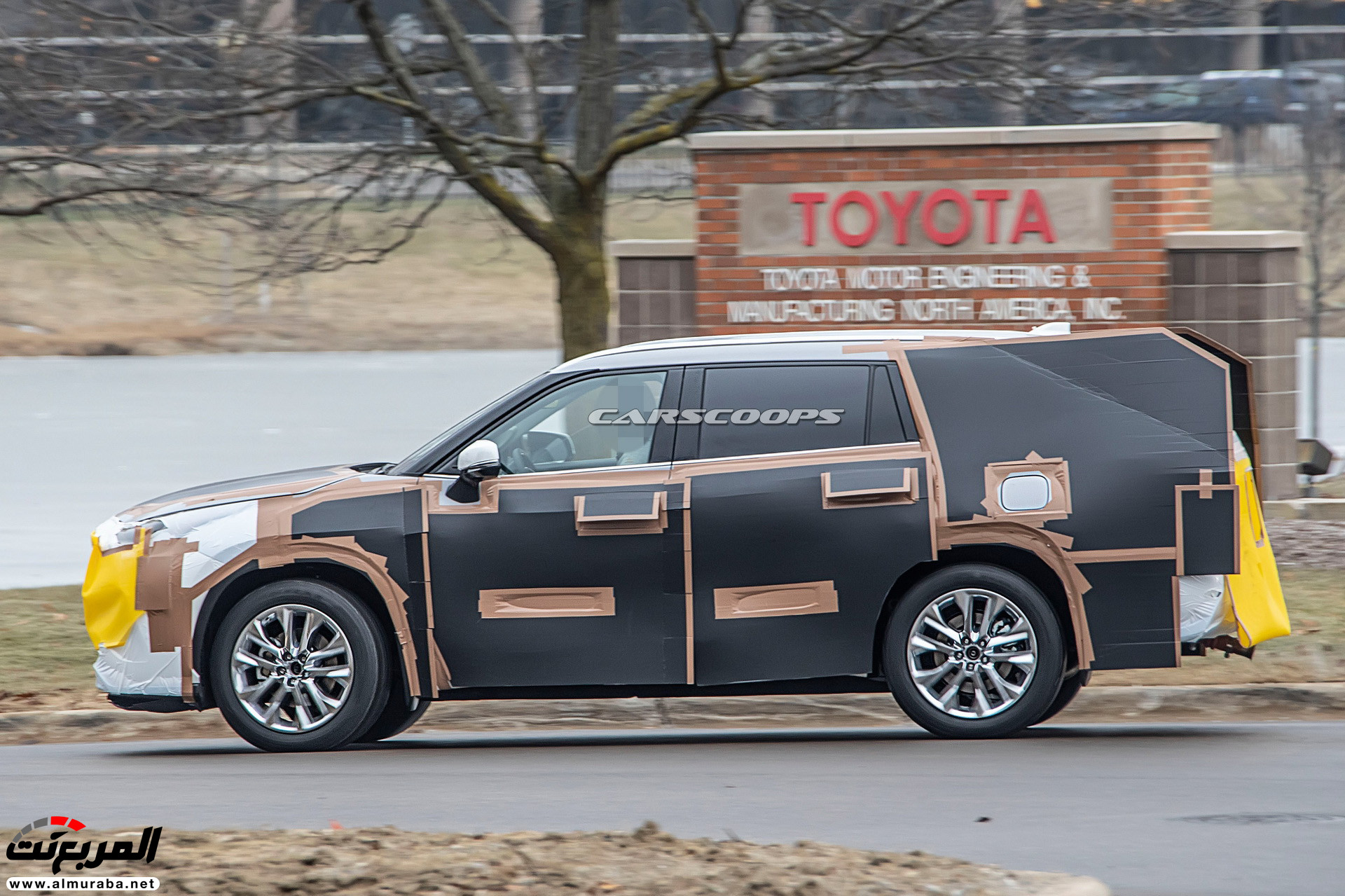 وفي الوقت ذاته، فإن المسافة بين قوس العجلات الخلفية والطرف البعيد من الباب الخلفي تخبرنا أن هايلاندر الجديدة قد زادت في الحجم بالكامل، وهو أمر سيوفر الراحة لركاب الصف الثالث.، أما بالنسبة لتصميم الجزء الخلفي، فإن الحواف الخارجية للمصابيح الخلفية لاتزال بارزة، كما هو الحال في الطراز الحالي.