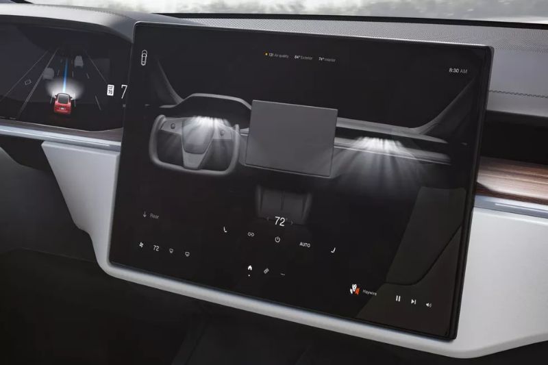 المقصورة هي نجم هذا العرض، حيث تمت إعادة تصميمها بالكامل، فقد حصلت على شاشة مركزية مقاس 17 بوصة تقول تيسلا أنها في الأساس شاشة ألعاب مزودة بمعالج بقوة 10 تيرافلوب وتُظهر الصور أنها تُشغل لعبة RPG الخيالية الشهيرة Witcher 3، مع شاشة أجهزة قياس رقمية مقاس 12.3 بوصة أمام السائق.