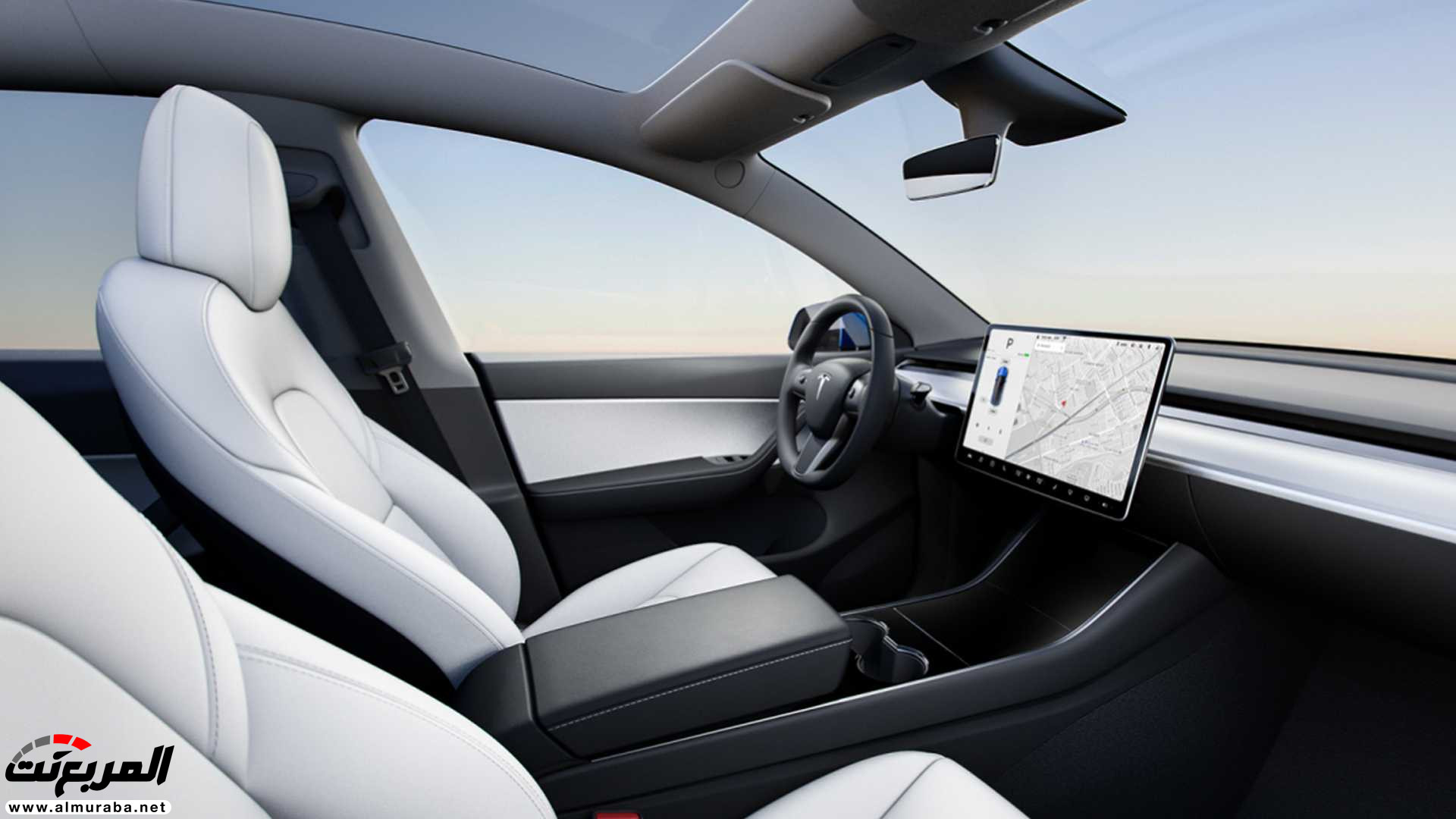 وتأتي السيارة بمزايا داخلية مشابهة لموديل 3، مع لوحة قيادة مبسطة وشاشة لمسية كبيرة في المنتصف للمعلومات الترفيهية والتحكم في كل شيء آخر تقريبا، مثل نظام Autopilot الاختياري للقيادة الذاتية، مع إمكانية اختيار ثلاثة صفوف مقاعد كي تتسع لـ سبعة ركاب مقابل 3,000$ إضافية (11,340 ريال).