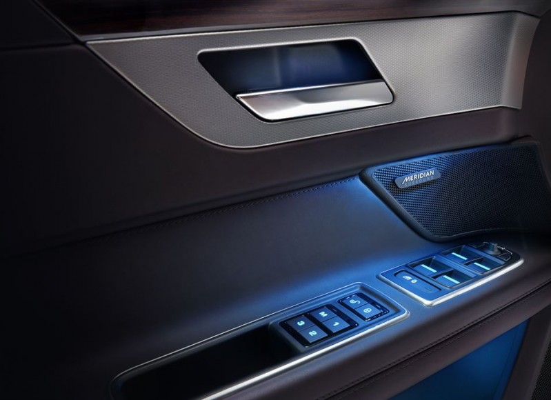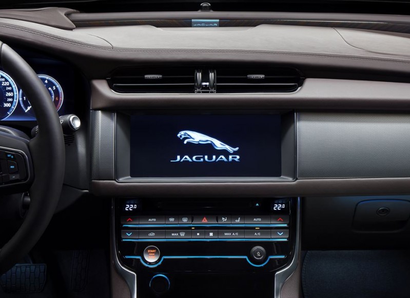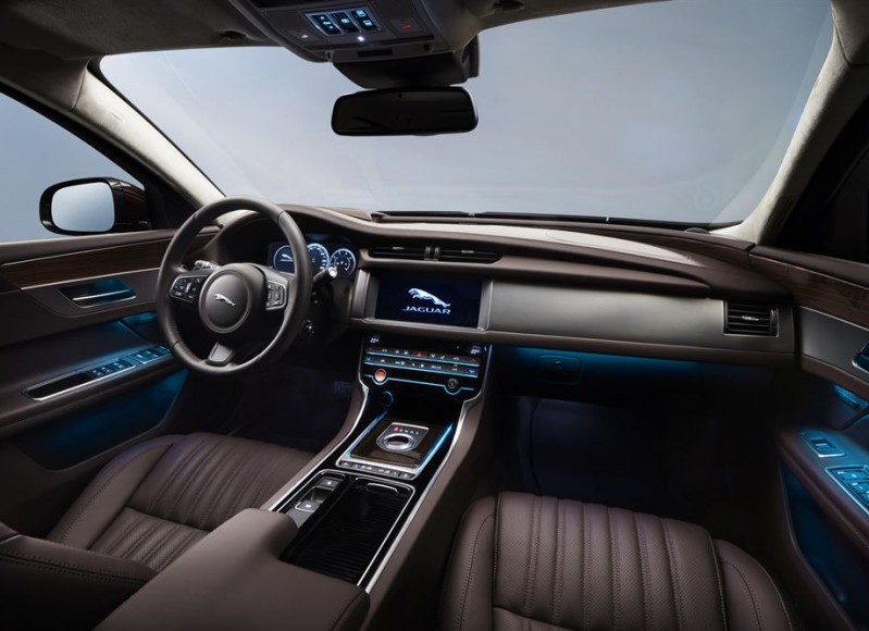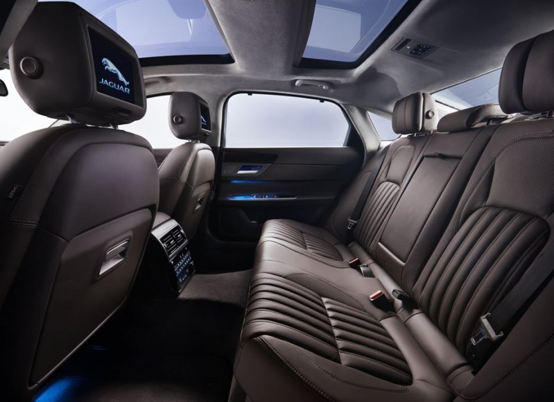 مقارنة بـ XF القياسية فإنّ XFL يبقى كل شيء فيها متطابق, يستثنى من ذلك الأبواب الخلفية الممتدة وهذا أمر طبيعي بسبب الزيادة في طول قاعدة العجلات, أما بداخل السيارة الجديدة فقد قامت صانعة السيارات البريطانية بتقديم شاشتين 8 إنش في خلف مسند رأس المقعدين الاماميين, موصول بهما سماعات رأس لا سلكية, ويستفيد نظام معلومات وترفيه XFL أيضا من آخر إصدار من شاشة InControl Touch Pro التي تعمل باللمس وبطول 10.2 إنش, نظام ميريديان الصوتي المحيطي, نظام تحكم بالمناخ يقسم السيارة إلى أربع مواقع مرفق به تحكم بـ تأيّن هواء المقصورة, منفذي HDMI, منفذي USB 3.0, مدخل للطاقة بقدره كهربائية 12 فولت. طاولات خلفية قابلة للطي, نظام تبريد أو تدفئة للمقاعد الخلفية مع نظام تدليك ونظام تمويه إلكتروني للنوافذ.