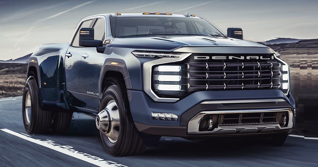 واحدة من التصاميم تتخيل جمس سييرا 3500 دينالي في المستقبل بشبك أمامي عملاق للغاية وتصميم مهيب ومصابيح أمامية LED مدمجة في الشبك.