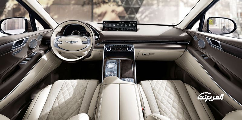 أما من الداخل ستجد أن جيب جينيسيس 2021 gv80 تتمتع بمساحات رحبة وواسعة، كما تتميز بتصميم فتحات التهوية الرقيقة والأنيقة التي تمر عبر مقصورة الركاب، وقد تم تقليل عدد الأزرار والمفاتيح الصلبة إلى الحد الأدنى، سواء للأغراض الجمالية أو لسهولة الاستخدام، وبالنسبة للمواد المتغيرة ذات المستوى الفخم، فإنها تغطي جميع السطوح من داخل مقابض الأبواب إلى وسادات الركبة المبطنة التي تبطن الجوانب السفلية من وحدة التحكم.
