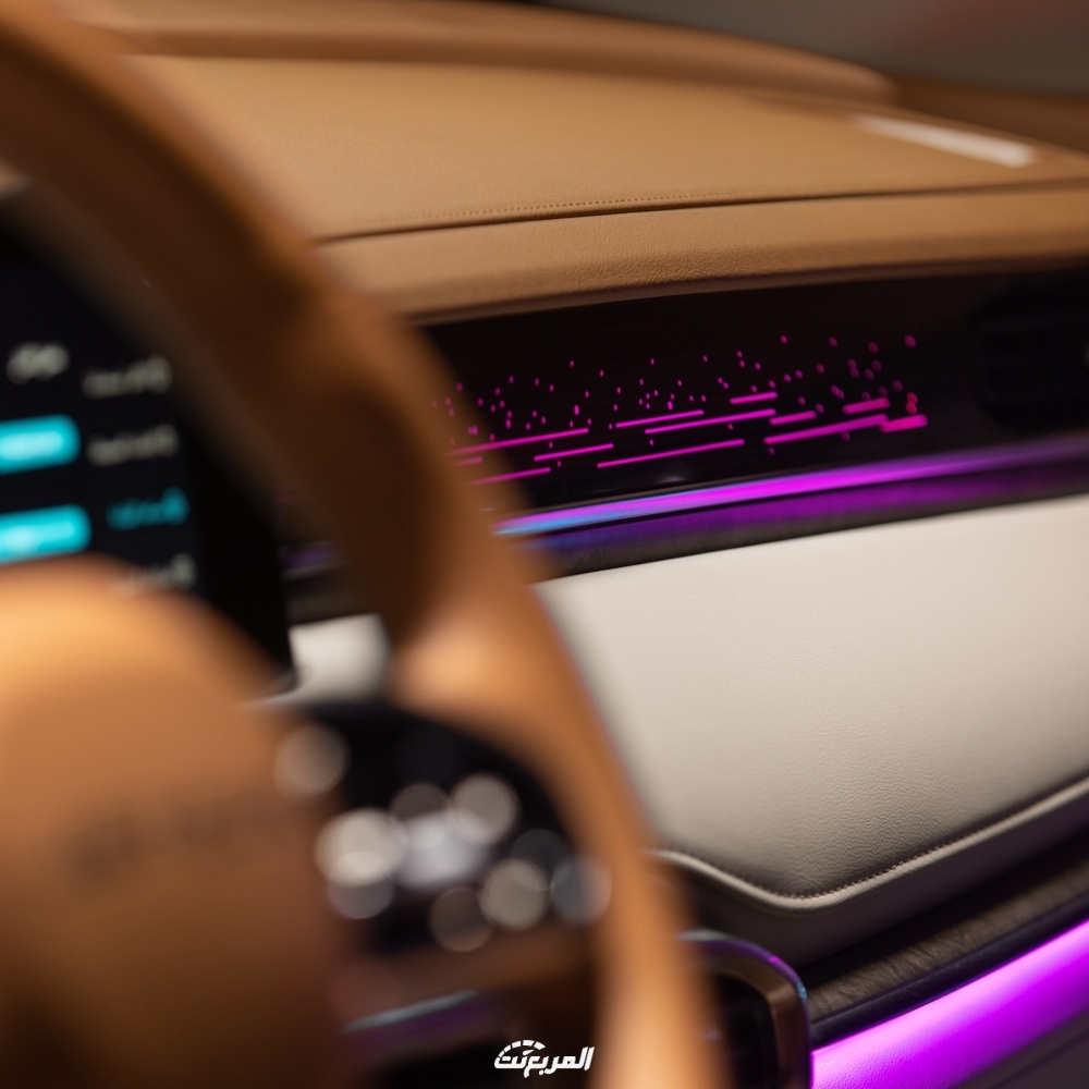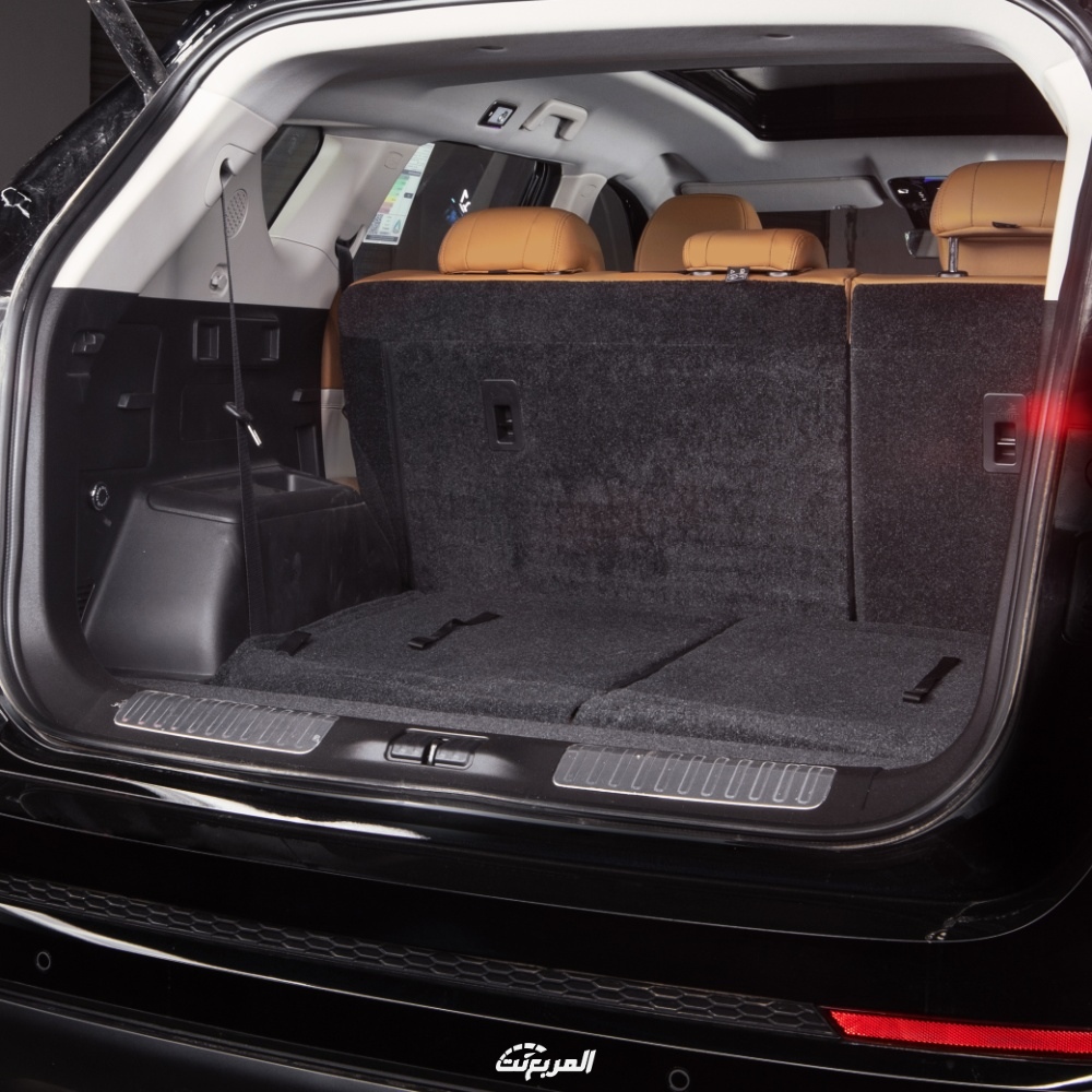 بالانتقال إلى المقصورة الداخلية للسيارة نرى أنها تتمتع بلمسات فاخرة فضلًا عن استخدام مواد عالية الجودة، حيث تأتي السيارة بـ 7 مقاعد من الجلد، تكفي لـ 5 أشخاص بالغين ومقعدين في الخلف للأطفال (مقاعد الصف الثالث بالسيارة)، فيما يأتي مقعد السائق قابل للتعديل كهربائيًا في 6 وضعيات، ومقعد الراكب الأمامي يدويًا في 4 وضعيات، ومقاعد خلفية قابلة للطي.