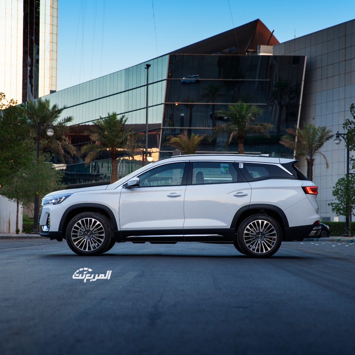وفي الجانب، نرى التصميم الانسيابي مع الخطوط البارزة التي تعزز من الأداء، فيما تظهر اللمسات السوداء على أقواس العجلات وعلى النوافذ الخلفية للمسة أكثر عصرية، كما تشتمل على مرايا جانبية تدعم الطي والتعديل الكهربائي، بينما ترتكز السيارة على عجلات من الألومنيوم مقاس 20 بوصة.