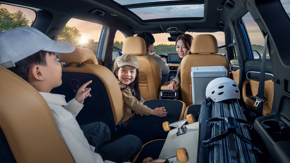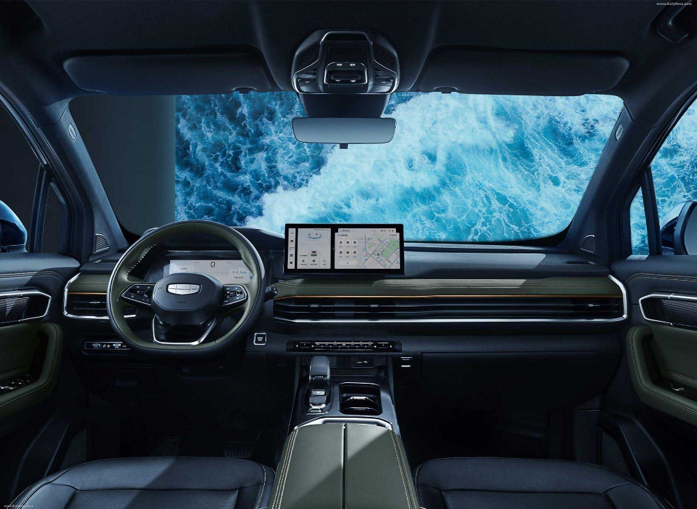 وبالانتقال لداخل جيلي اوكافانجو 2024 فسنرى المقصورة الرحبة لـ الاس يو في العائلية في جيلها الجديد والتي جاءت أكثر أناقة مع طابع عصري ولمسات فاخرة نراها في المواد الجلدية التي تُغطي أجزاء عدة من المقصورة بالإضافة للتجهيزات العملية التي تجعل من استخدام المقصورة أكثر سهولة.