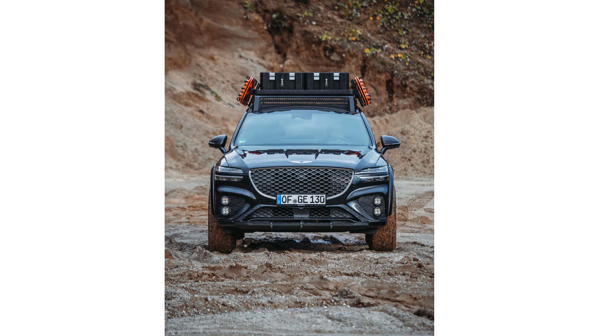 هل جينسيس GV70 مناسبة كسيارة تضاريس وعرة؟ .. لنلق نظرة على هذه النسخة الاختبارية التي حصلت على تعديلات لنظام التعليق لرفعه بـ 2 إنش بغرض تحسين الخلوص الأرضي والتعامل مع الدروب القاسية بشكل أفضل، كما استلمت الـ SUV الفاخرة جنوط 18 سوداء جديدة بإطارات جاهزة لجميع التضاريس.