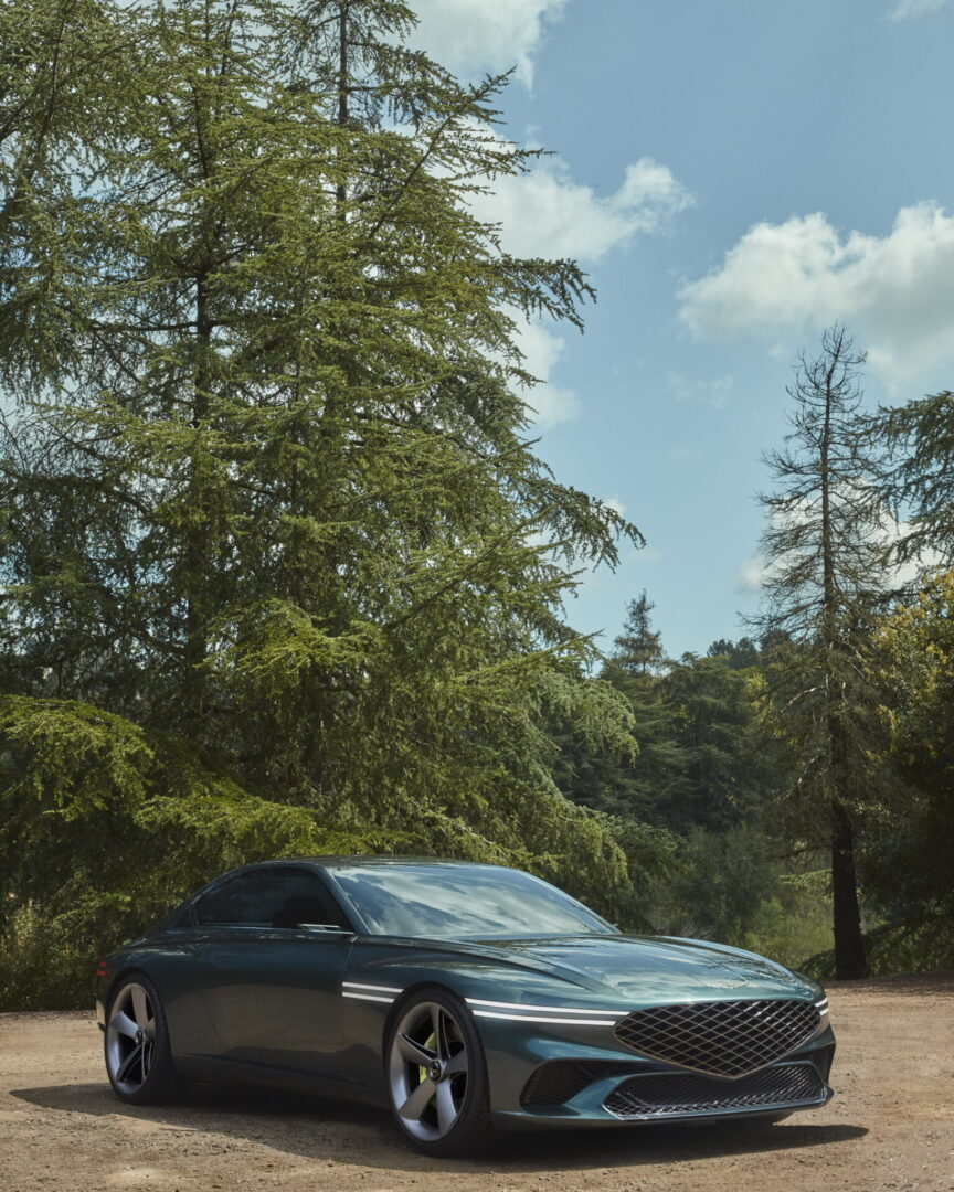 هذه هي خامس سيارة اختبارية في تاريخ الشركة، وتستمر بالشبك الأمامي والمصابيح المنقسمة المميزة لسيارات جينيسيس الحالية، ولكن مع تطور التصميم “العضلي الأنيق” لذروته في الكوبيه الكهربائية.