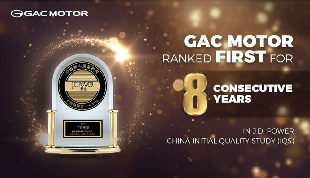 وتعد جي ايه سي العلامة الصينية الوحيدة الحاصلة على جائزة جي دي باور لـ 8 سنوات متتالية، وحصلت جي ايه سي على الجائزة بين عامي 2013 و2020.