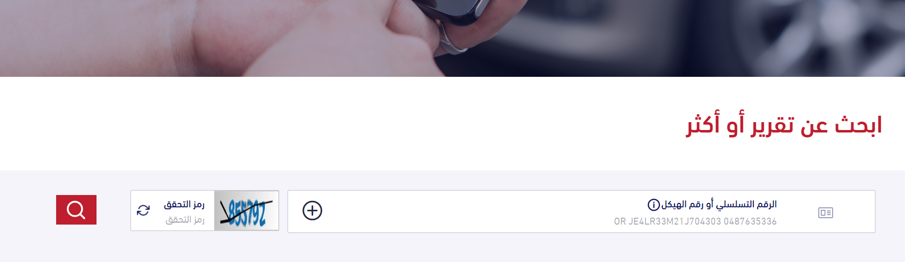 - سجل الرقم التسلسلي أو رقم الهيكل في المستطيل الذي يظهر بمجرد فتح الموقع.