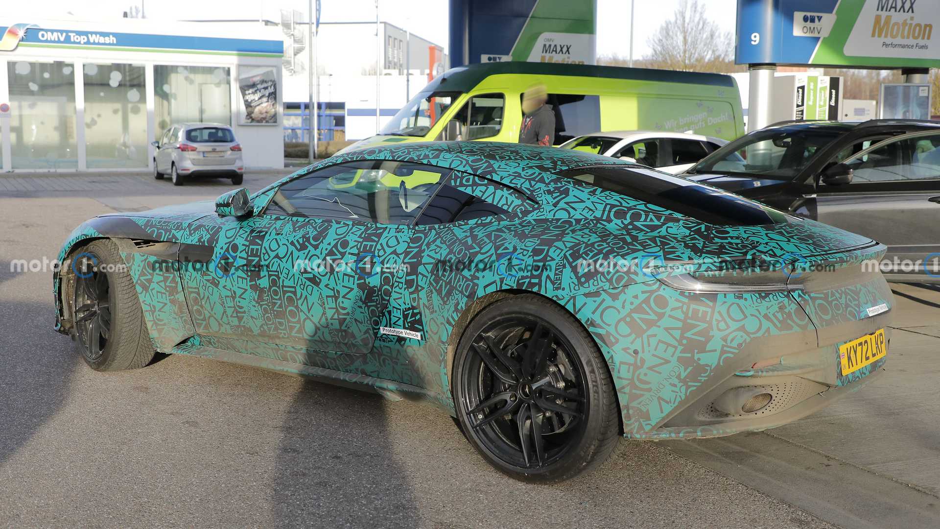 وظهرت السيارة أثناء اختبارها في أوروبا، تحديداً أثناء تزويدها بالوقود في محطة وقود ويبدو الهيكل الخارجي لها متسخاً جداً بعد يوم مرهق من الاختبارات، ويصعب للوهلة الأولى التعرف على تحديثات الجيل الجديد، خاصة وأن استون مارتن تعمدت وضع نفس الهيكل الخارجي للجيل الحالي على الموديل الجديد لتمويهه بشكل إضافي.