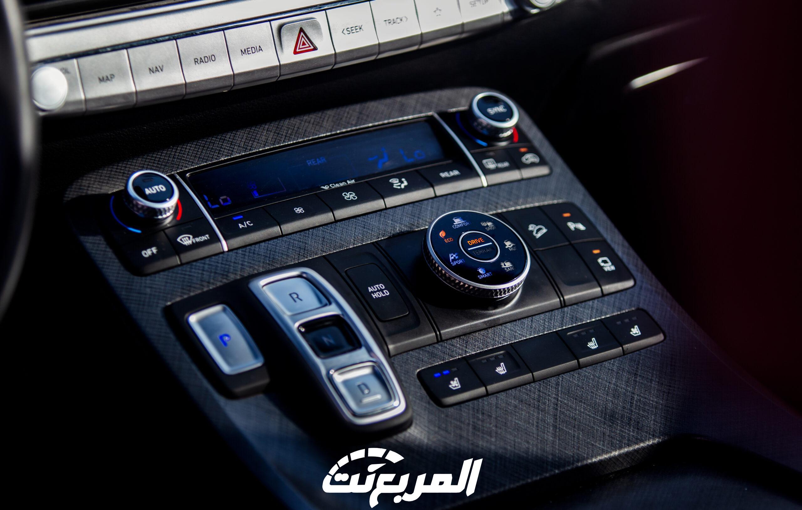 وأسفل الشاشة يوجد فتحات التكييف، بالإضافة إلى لوحة أزرار مُختصرة للشاشة الوسطية، وأسفلها يوجد لوحة التحكم في التكييف ثنائي المناطق بشاشة صغيرة، مع فرار إختيار لأوضاع القيادة المختلفة، مع أزرار تبريد وتدفئة المقاعد الأمامية، وأزرار ناقل الحركة.