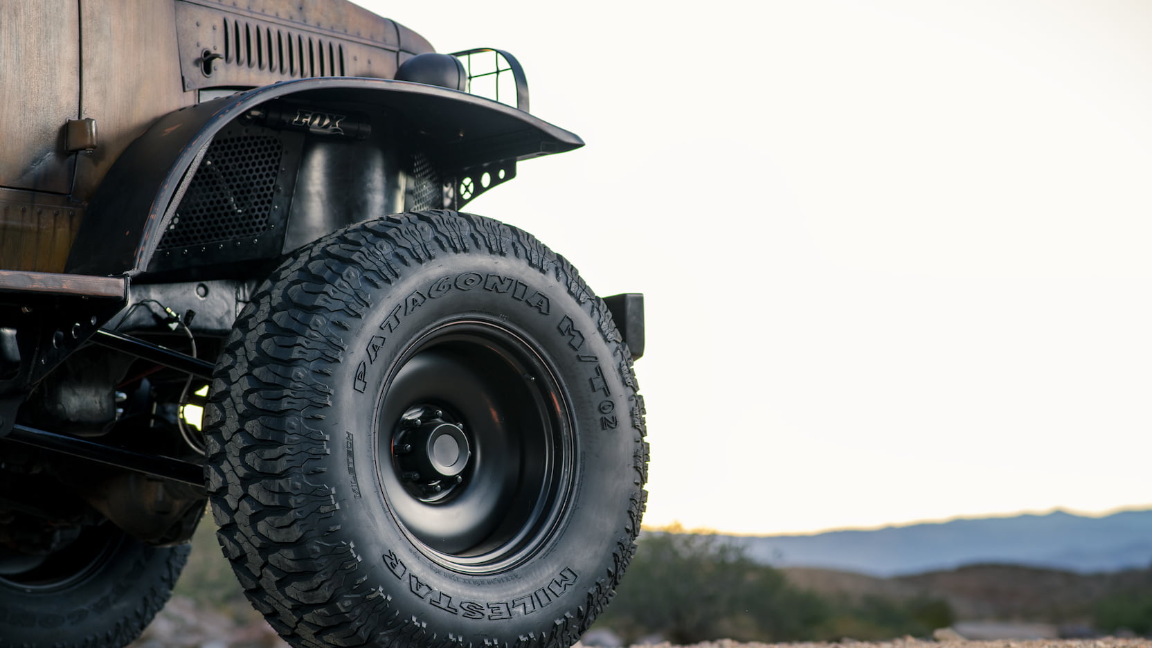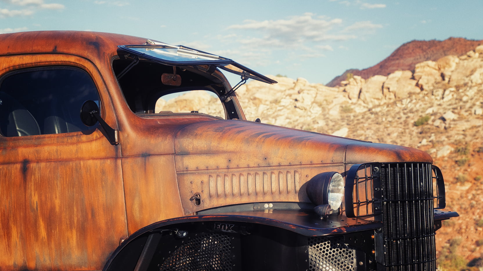 تظهر شاحنة دودج WC26 موديل 1941 بتصميم خارجي قوي بطلاء خاص لمقاومة الأتربة والأجواء الصحراوية بطابع مستوحى من السيارات الكلاسيكية المهجورة، مع مصدات فولاذية باللون الأسود وأقواس عجلات كبيرة تحتوي العجلات الرياضية المقدمة بقياس 22 إنش مع إطارات مخصصة للطرق الوعرة بقياس 42 إنش.