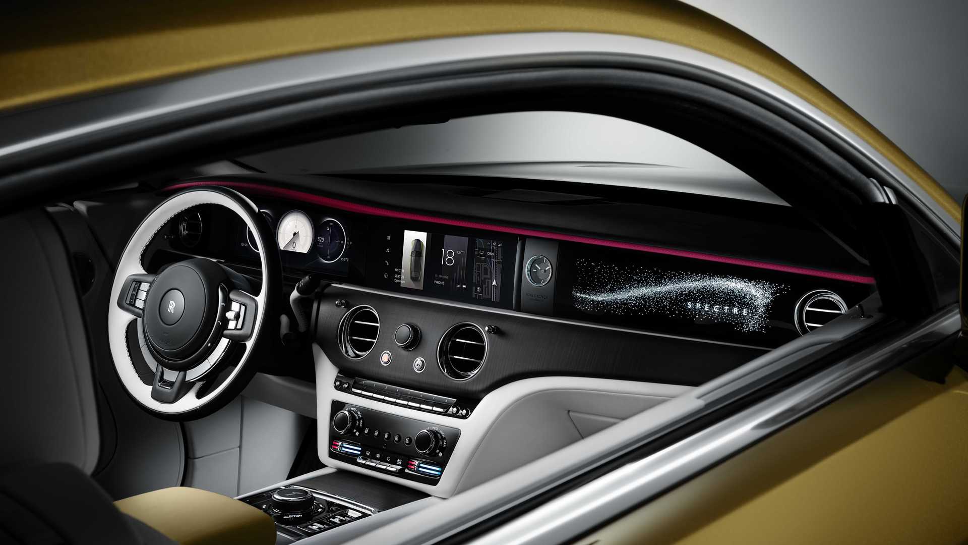 كما تأتي سبيكتر بأكثر داخلية متطورة تقنياً لأي منتج رولزرويس حتى الآن، مع 4,796 نقطة مضيئة بديعة مشابهة للنجوم في المقصورة، وبالنسبة لأرقام الأداء فتستمر رولزرويس بتحسينها، ولكن حالياً، تولد السيارة 577 حصان بحد أقصى و900 نيوتن متر من عزم الدوران، مع مدى صافي 418 كيلومتر لكل شحنة، وتسارع من السكون إلى 96 كلم\س في 4.4 ثانية.