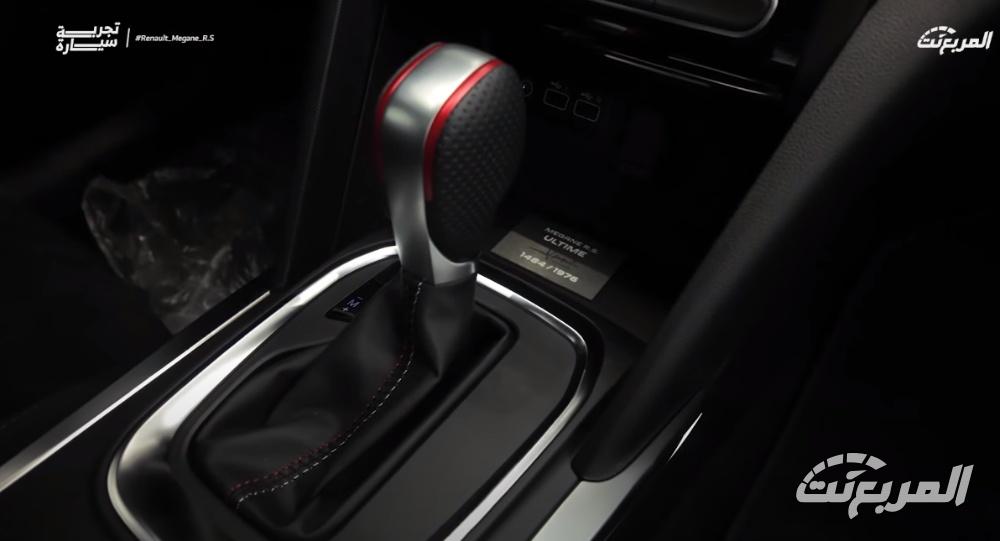 بالانتقال إلى داخلية رينو ميجان RS 2024، نجد أنها تتمتع بتصميم مميز، حيث تتسع لـ 5 ركاب، مع مقاعد بتصميم رياضي حاضن مع كسوة من الألكانتارا بتطريز أحمر، وهي كسوة رياضية بامتياز ذات إحساس فخم، وتساهم في تماسك جسم السائق عند المنعطفات الشديدة، ويُلفت لنظر إلى تصميم المقود المدمج أيضًا والذي يتمتع بإحساس رياضي، خاصة من كسوة الجلد النابا مع كسوة ألكانتارا المكثفة، وتطريز أحمر مميز.