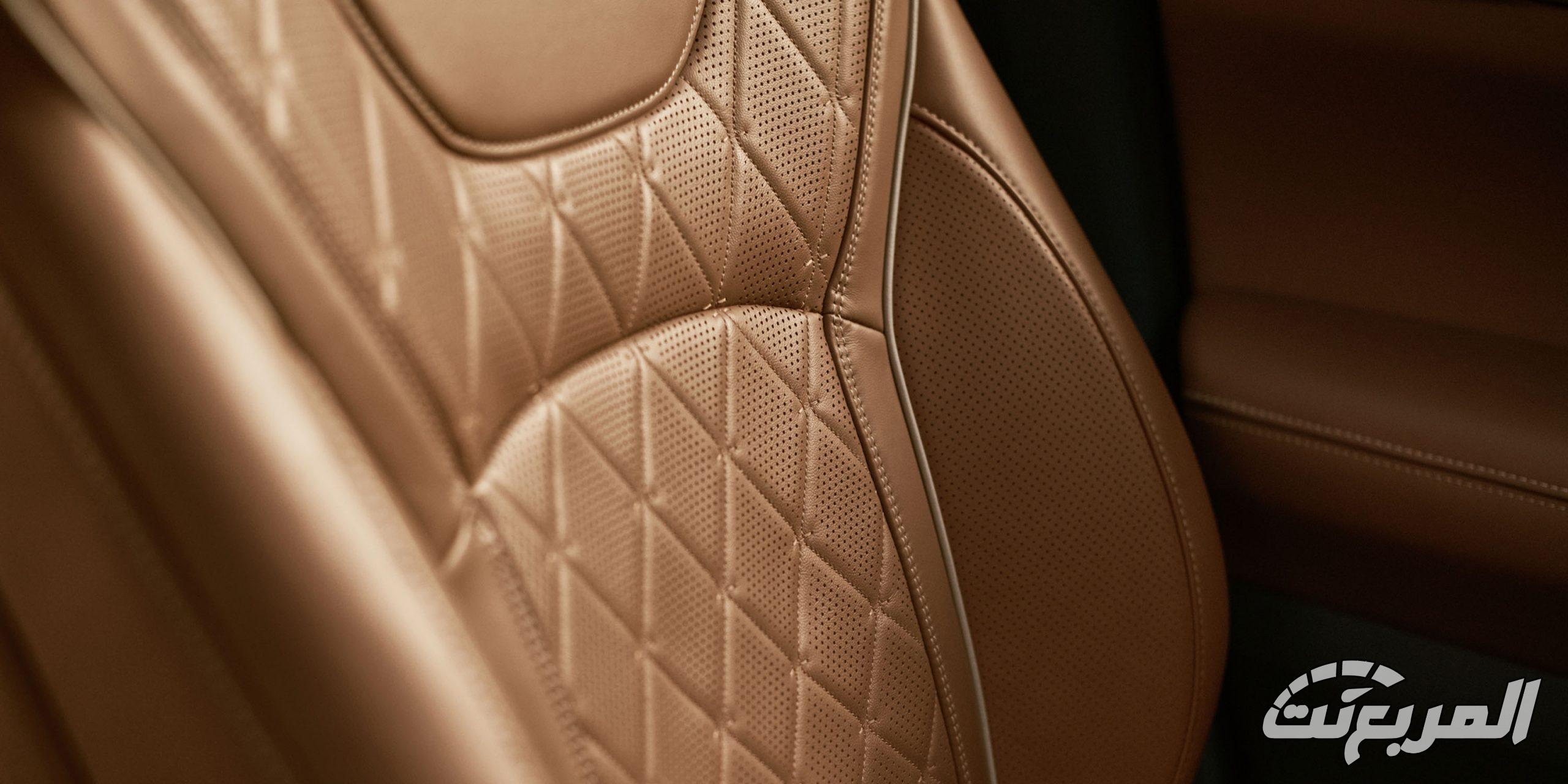وبالدخول للمقصورة نجد الفئة الأعلى ذات مقاعد مُغطاة من الجلد شبه الأنيلين، وعلى وجه التحديد بمقاعد مكيفة للراكب بالأمام والسائق، مع التدفئة لمقاعد الصف الثاني، ولا يتوفر بالفئة الأساسية خاصية التدليك للمقاعد الأمامية.