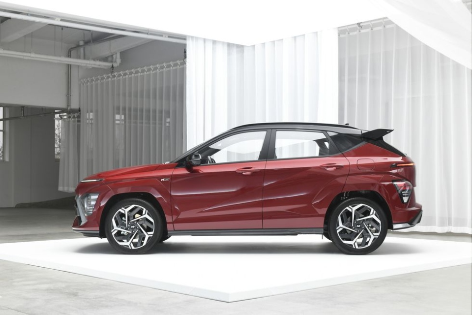 وعلى جانبي السيارة، حصلت كونا على خطوط بارزة حادة عززت الطابع الرياضي والجريء للسيارة، وتأتي السيارة الكورية في فئة N LINe مع مظهر أكثر رياضية فقد حصلت على المزيد من اللمسات الجريئة التي تتجلى في الجناح الخلفي بلونه أسود،