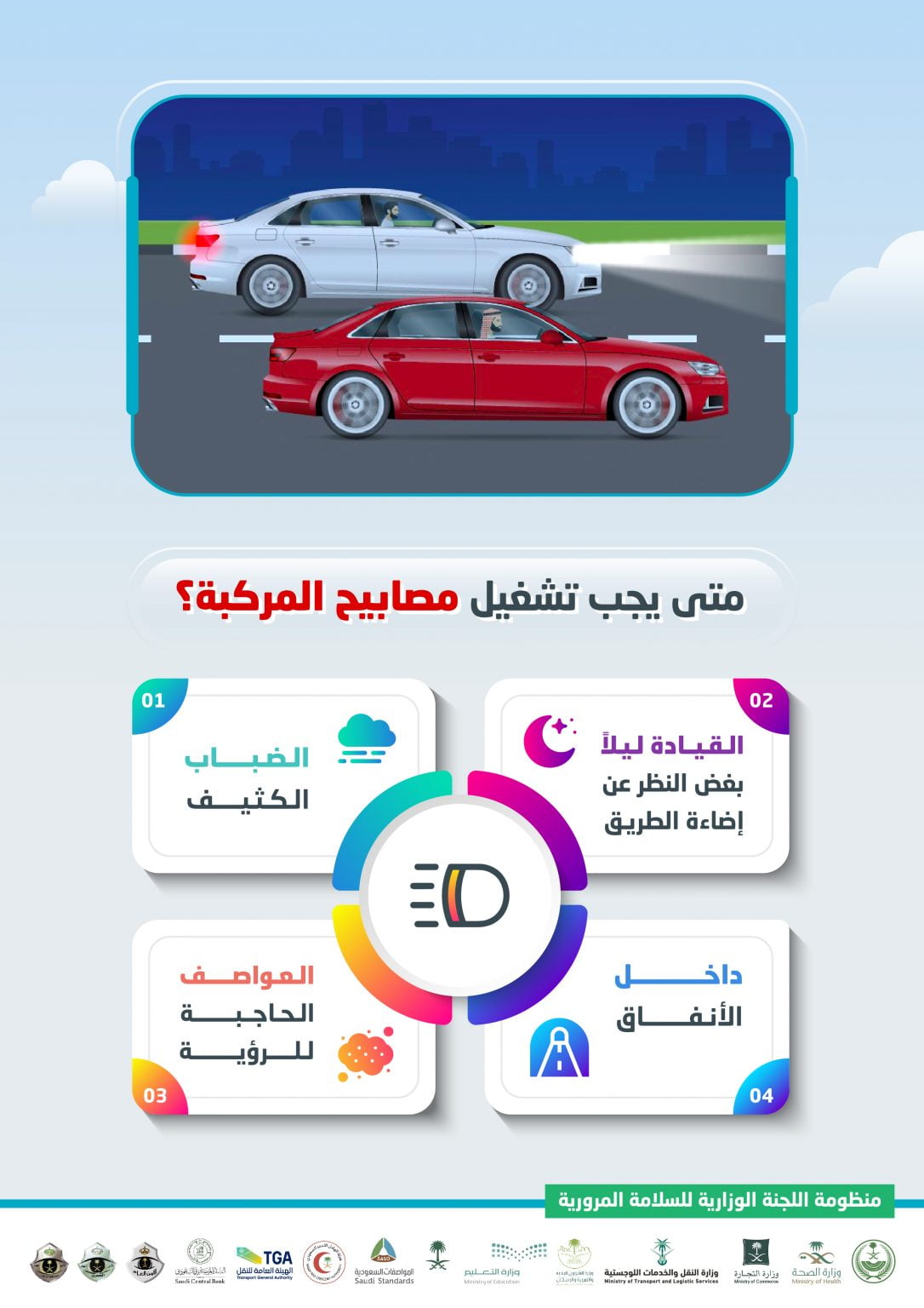 كشفت منصة “سلامتك” في وقت سابق، عن 4 حالات يجب على السائقين والسائقات معها تشغيل مصابيح مركباتهم، ومنها حال القيادة خلال فترات الليل، وفيما يلي نستعرضها لكم كافة هذه الحالات.