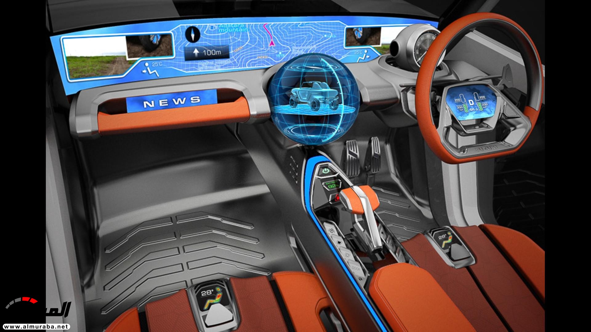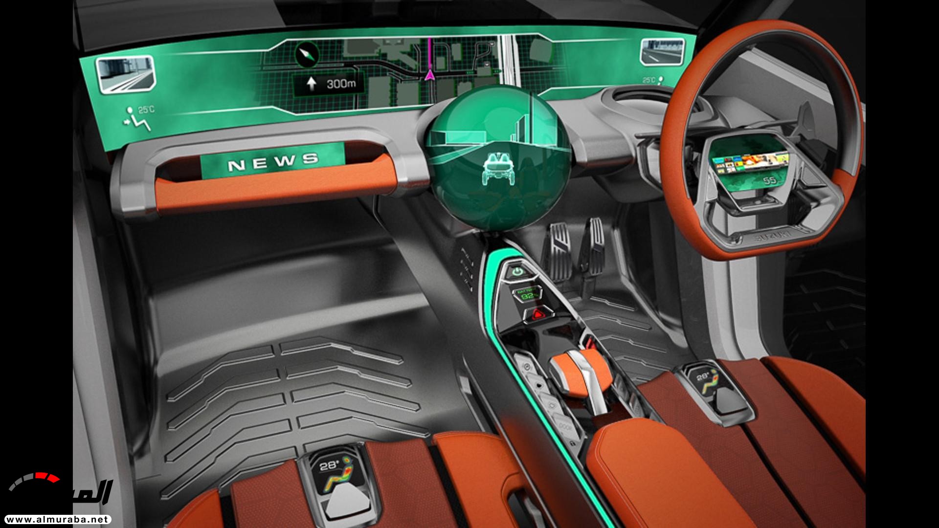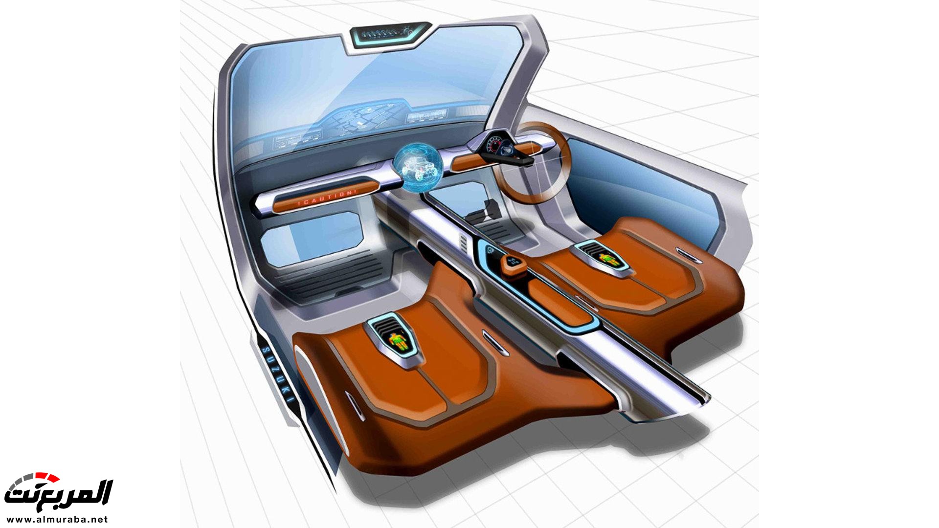 وتظهر داخلية الإس يو في المستقبلية مثيرة للإهتمام تمامًا كخارجيتها، بشاشة عرض ضخمة مُثبتة في عجلة القيادة المسطحة. كما تسيطر على الكونسول الوسطي شاشة عرض معلوماتية أخرى كروية الشكل تظهر عليها المعلومات بنمط 3D. كما توجد شاشة ثالثة جهة مقعد الراكب، بالإضافة إلى شاشتين صغيرتين أخرتين مُثبتتين في المقاعد. كما تم إدراج مكبرات صوتيه وأنظمة تكييف هواء في المقاعد.