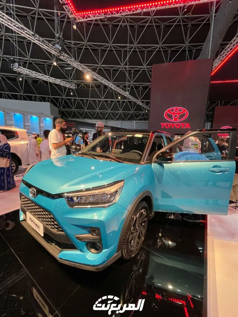 من ضمن السيارات التي تم عرضها “تويوتا رايز 2022” الكروس أوفر الاقتصادية الشبابية الجديدة، والتي تأتي بمحرك مكون من 3 اسطوانات تيربو، بسعة 1.2 لتر، وبقوة 98 حصان، وعزم دوران 140 نيوتن/متر، صرفية وقود 19.3 كم لكل لتر، بصندوق أمتعة رحب بسعة تخزين 369 لتر، وتتصل المحركات بناقل حركة متغير باستمرار CVT سريع الاستجابة؛ تستهدف السيارة فئة الشباب بشكل خاص وتتوفر بألوان جديدة وجريئة مميزة وتأتي بطول 4,030 مم، وعرض 1,710 وارتفاع 1,600 مم، ويبلغ طول قاعدة عجلاتها 2,252 مم.