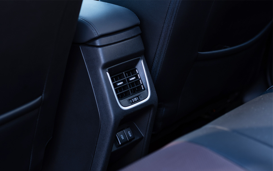 كما تشمل التجهيزات نظام تكييف أوتوماتيكي أمامي وخلفي، مع وجود منفذي USB-A بالأمام والخلف مع منفذ USB-C خلفي في الفئة العليا، بينما تشمل الفئة القياسية على منفذ واحد USB-A، بالإضافة لدعم عرض المعلومات على الزجاج الأمامي.