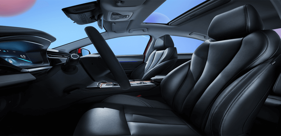 وتشتمل المقصورة على صفين من المقاعد المريحة التي تتسع لخمسة ركاب بشكل رحب لتناسب العائلات الصغيرة، وتحصل المقاعد كما ذكرنا على كسوة من الجلد مع تطريز بارز يُضيف طابع راقي، فيما يدعم مقعد السائق التعديل الكهربائي لتغيير الوضعية.