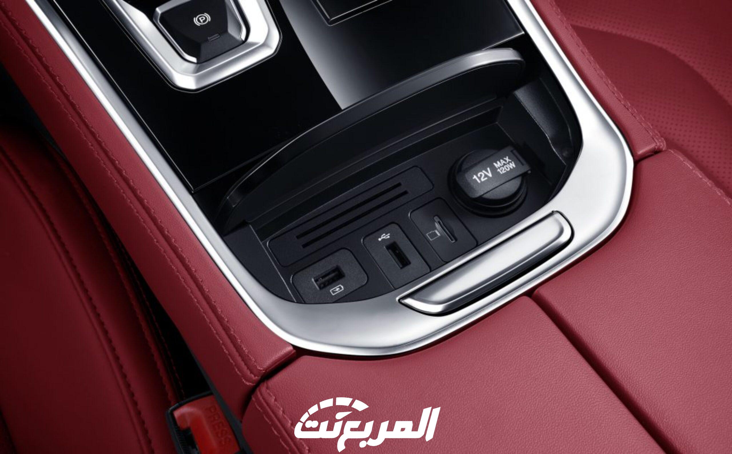 تتجمل المقصورة مع نظام إضاءة محيطية LED من 64 لون يمكن الاختيار بينها، ويتوسط لوحة القيادة شاشة معلومات وترفيه مقاس 12.3 بوصة تعمل باللمس، كما تأتي العدادات بشاشة 10.25 إنش، ونظام الصوت يأتي مع 8 سماعات، ويوجد دعم بلوتوث وراديو، كما توجد منافذ USB في الأمام والخلف، ومكيف الهواء أوتوماتيكي التحكم مع فتحات تهوية خلفية وفلتر لتنقية الهواء.