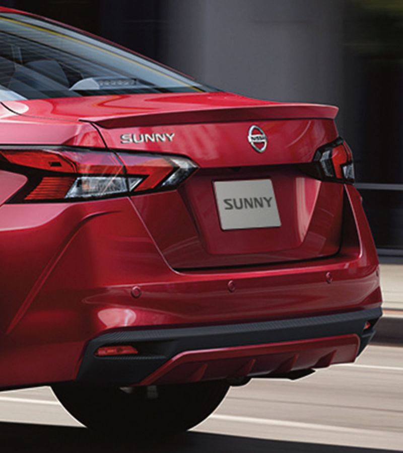 هناك الشبك الأمامي في مقدمة السيارة ويأتي شبك نيسان على هيئة حرف (V)، ويتضح أن الشبك يأتي مع لمسات كرومية في سيارة نيسان صني 2022 مع حواف فيما يرتبط بالهيكل الخارجي، حيث تبدأ الحواف من المصابيح التي توجد بالأمام وتندمج مع الخطوط إلى الجزء الخلفي ويأخذ الجناح الخلفي اللون ذاته الخاص بالسيارة. ويُمكن ضبط المرايات الجانبية بصورة كهربائية، حيث تُصدر إشارات الانعطاف التي تقوم بدورها في معاونة قائد السيارة خلال عملية القيادة.