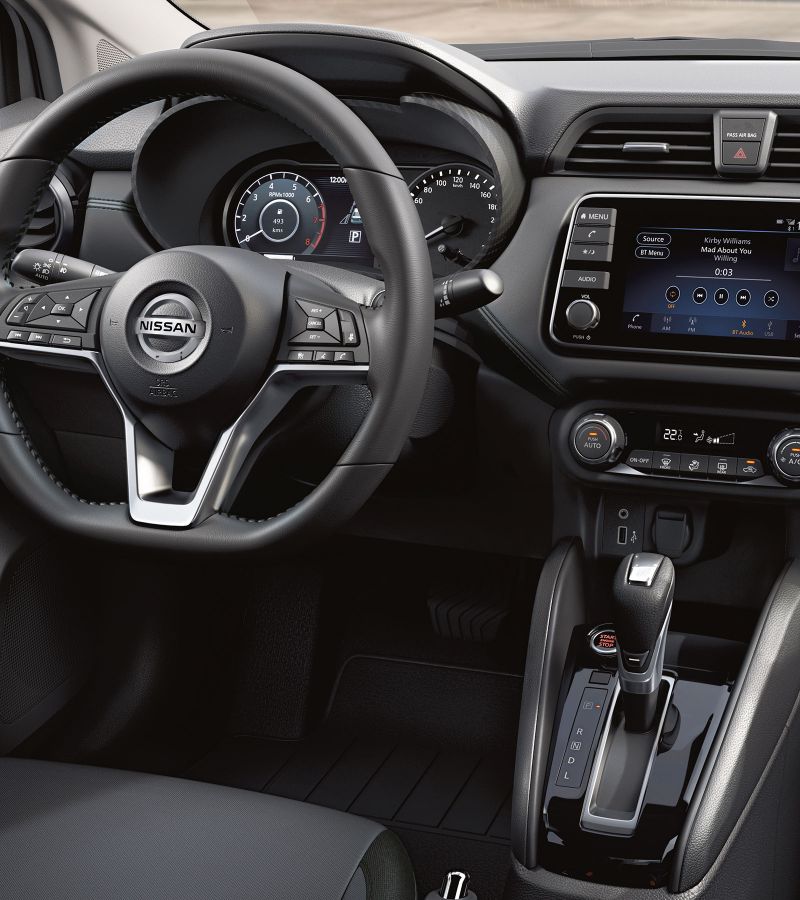 قامت الشركة الياباينة بتوجيه الاهتمام لما يخص داخلية السيارة وتُتيح هذا الإصدار من نيسان 5 مقاعد مع سهولة طي المقاعد الخلفية لتوفير المساحة، وعند النظر ناحية شاشة النظام الترفيهي يتضح أنها بمقاس 7 بوصة، وتدعم أنظمة مثل: أبل كار بلاي وأندرويد أوتو، وهذا بجانب توفر خاصية البلوتوث من أجل توصيل الأجهزة الذكية التي تصاحب الراكبين في طريقهم.