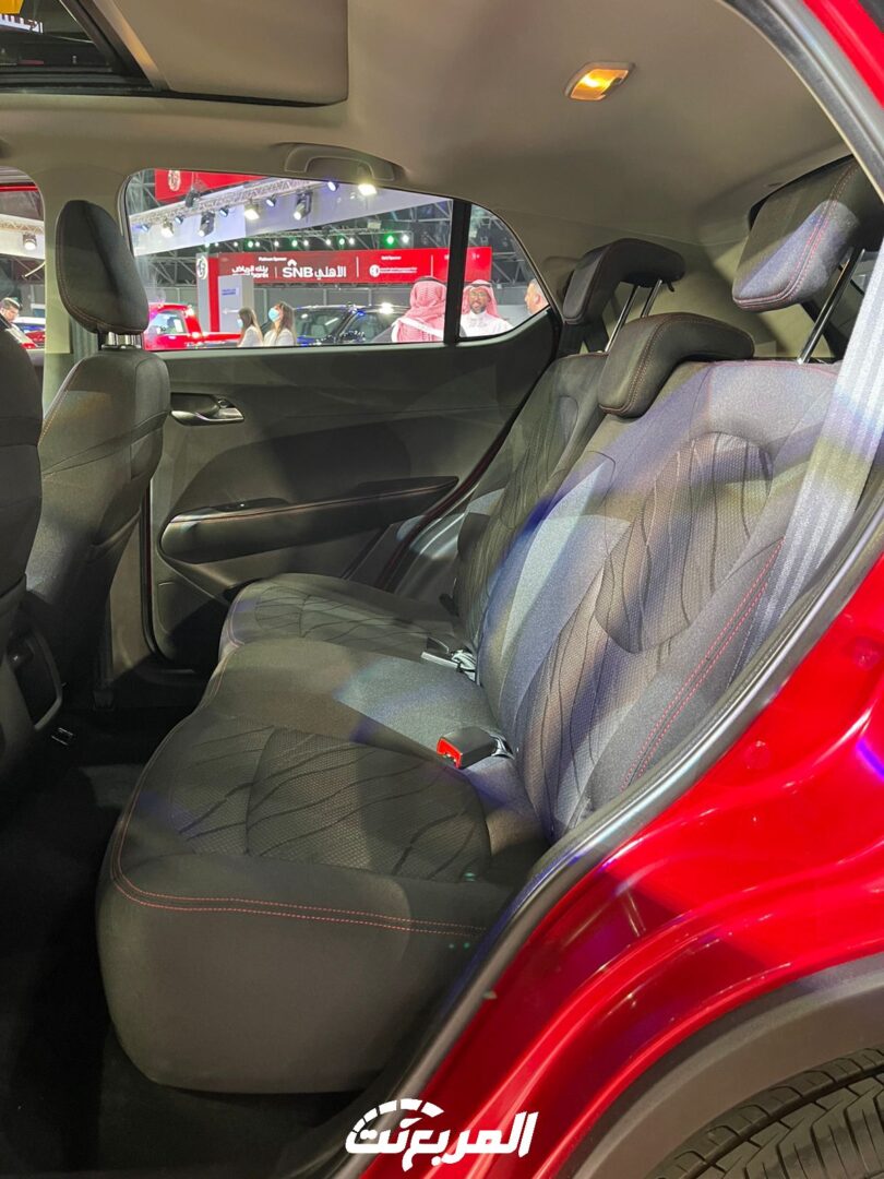 في الداخل، تحصل المقصورة على مقعد سائق قابل للتعديل في أربعة اتجاهات كهربائياً واتجاهين يدوياً، مع خياطة حمراء في الفئة الأعلى وعجلة قيادة مزودة بأزرار تحكم في الصوت والسرعة، كما تتوفر بمركز معلومات القيادة أحادي اللون مقاس 3.5 بوصة وسط العدادات، ونظام ترفيهي بشاشة لمس ملونة مقاس 8 بوصة، وتكييف هواء أوتوماتيكي.
