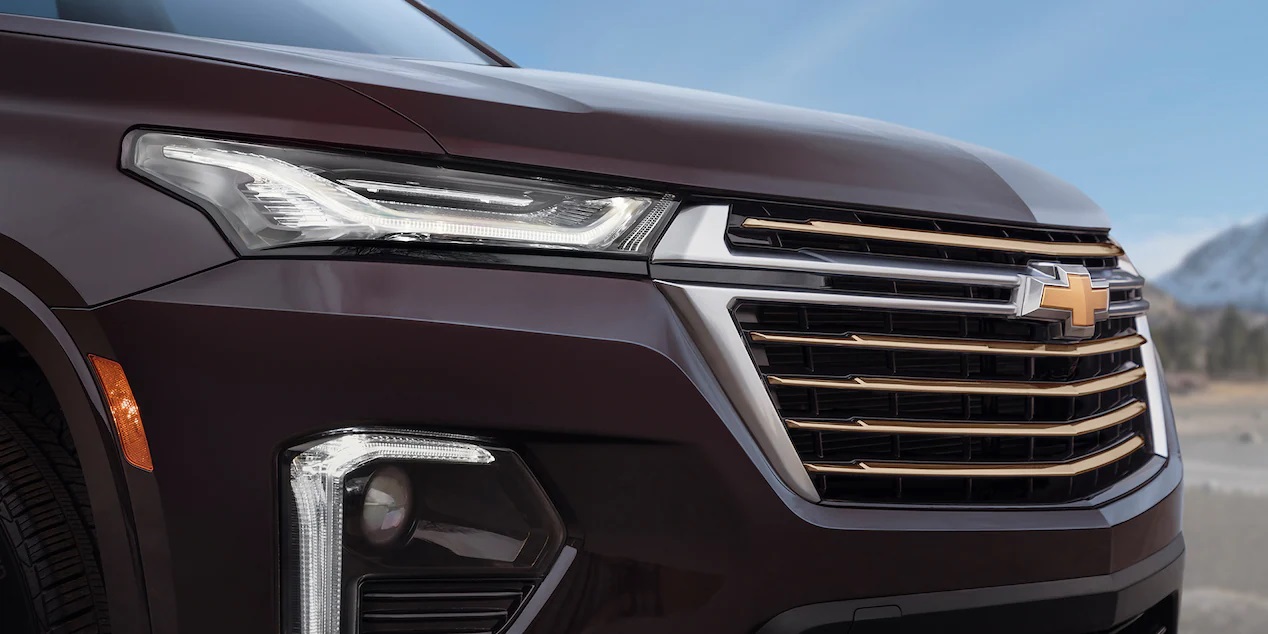 فضلاً عن ذلك جاءت سيارة ترافرس 2023 بمصابيح أمامية حادة وجريئة ونحيفة مما عزز الطابع الهجومي للسيارة، وجاء الشبك مندمج بانسيابية مع المصابيح الأمامية لمظهر أكثر أناقة.