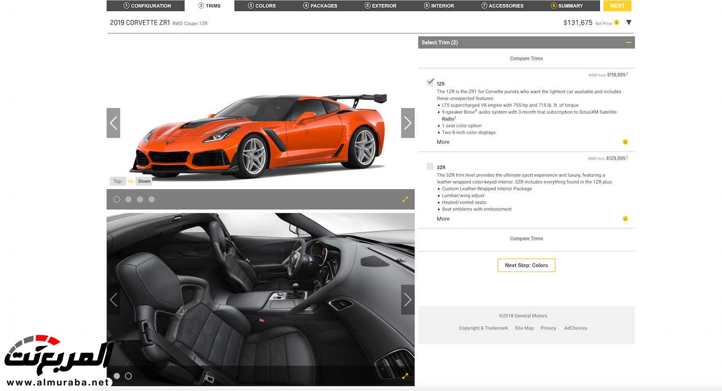 المربع نت – أطلقت شيفروليه برنامجا إلكترونيا يسمح لكم الآن بتهيئة وتخصيص مواصفات كورفيت ZR1 موديل 2019 حسب رغباتكم، كما أعلنت الشركة عن سعر السيارة المرتقبة، والذي يبدأ من 120,000 دولار (448,000 ريال سعودي).