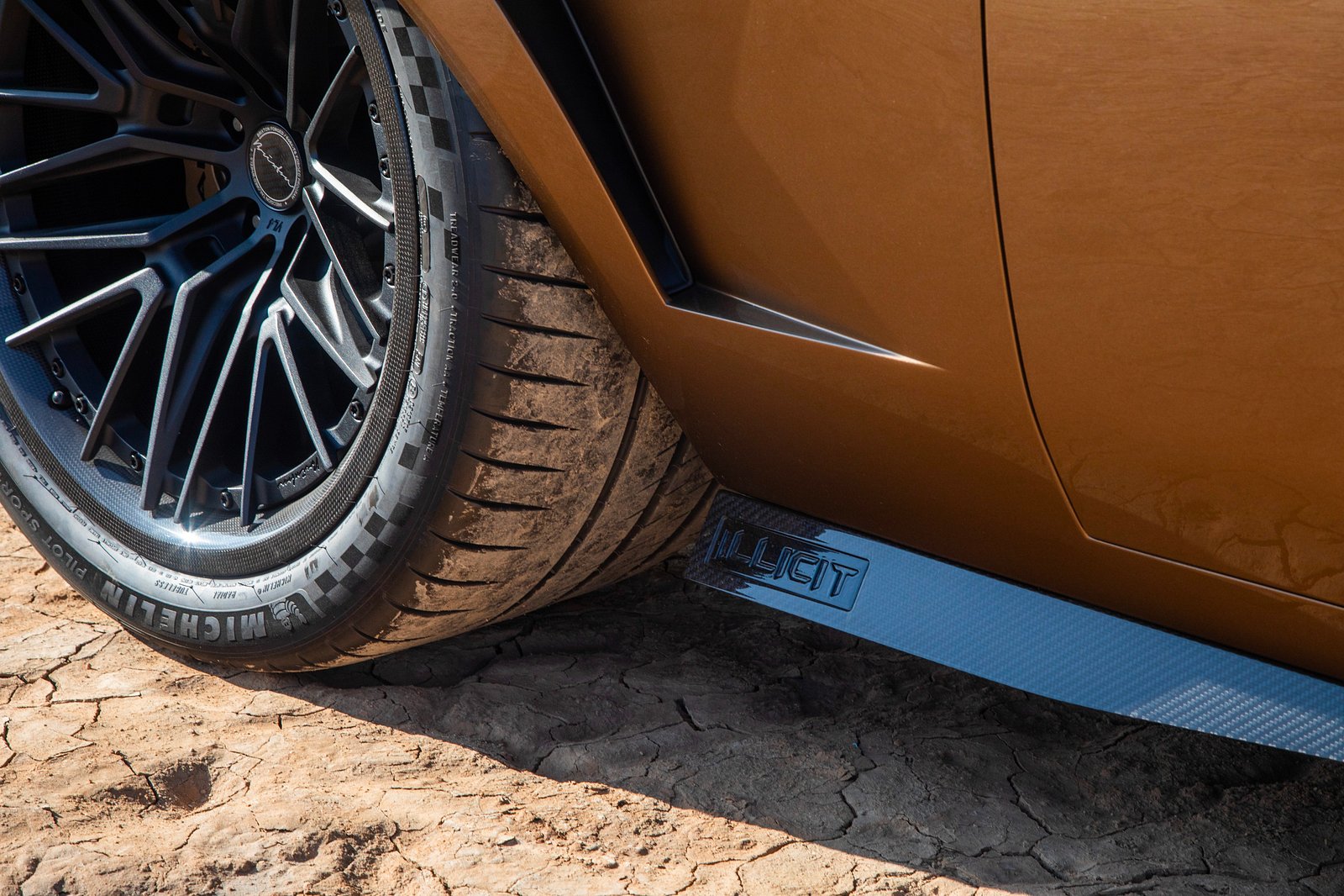 تستمر القطع الفريدة المصنعة من ألياف الكاربون بالظهور على هيئة مشتت هواء أمامي وخلفي، وعتب جانبي، وجناح خلفي رياضي، بالإضافة إلى مصد خلفي جديد، وتكتمل هذه اللمسات الخارجية الفريدة بالطلاء البرونزي الذي يتناسب تماماً مع قطع ألياف الكاربون المكشوفة مثل غطاء المحرك الكبيرة.