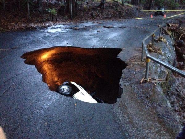 المربع نت – شهد أحد الطرق الرئيسية في ولاية هاواي الأمريكية حدوث فجوة أرضية عميقة ابتلعت سيارة أثناء سيرها على الطريق، وذلك بسبب هطول أمطار غزيرة على مدار أيام أسفرت عن انشقاق الأرض.