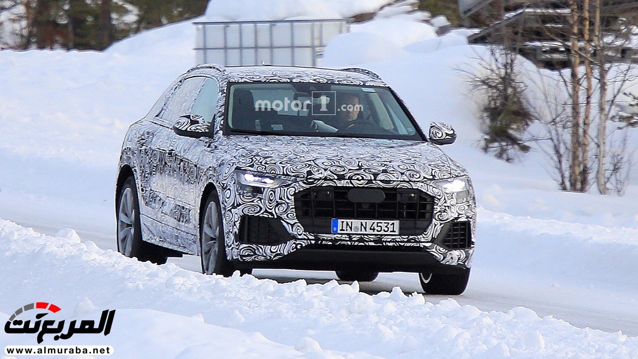 أودي قد كشفت عن كونسبت Q8 بمعرض سيارات ديترويت في مطلع الشهر الجاري, ولكن الصور التجسسية تبين أنها تعمل بجد لتجهيز الموديل الإنتاجي والذي يبدو أنّ النموذج الاختباري يمتلك بعض سِماته أثناء تزلجه على الجليد بجانب الـ Q7.