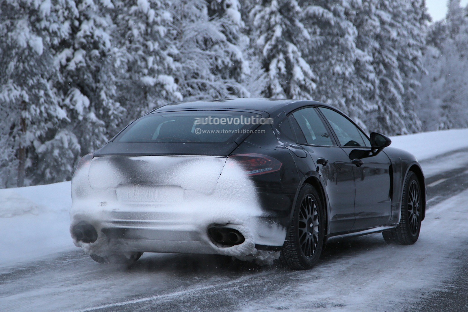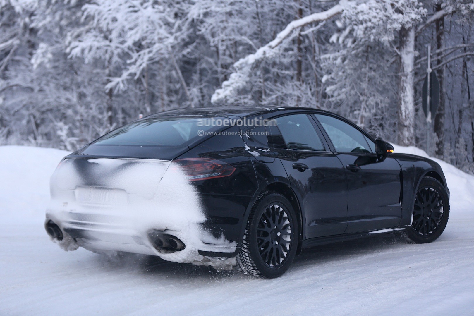 من خلال الصور تظهر باناميرا الجديد بتمويه شبه منعدم حيث نلاحظ ان المصابيح الامامية والخلفية حصلت على تصميمها الجديد الضيق و يمكن ان نتوقع اطلاق الهيكل النهائي للسيارة في الايام القليلة القادمة.