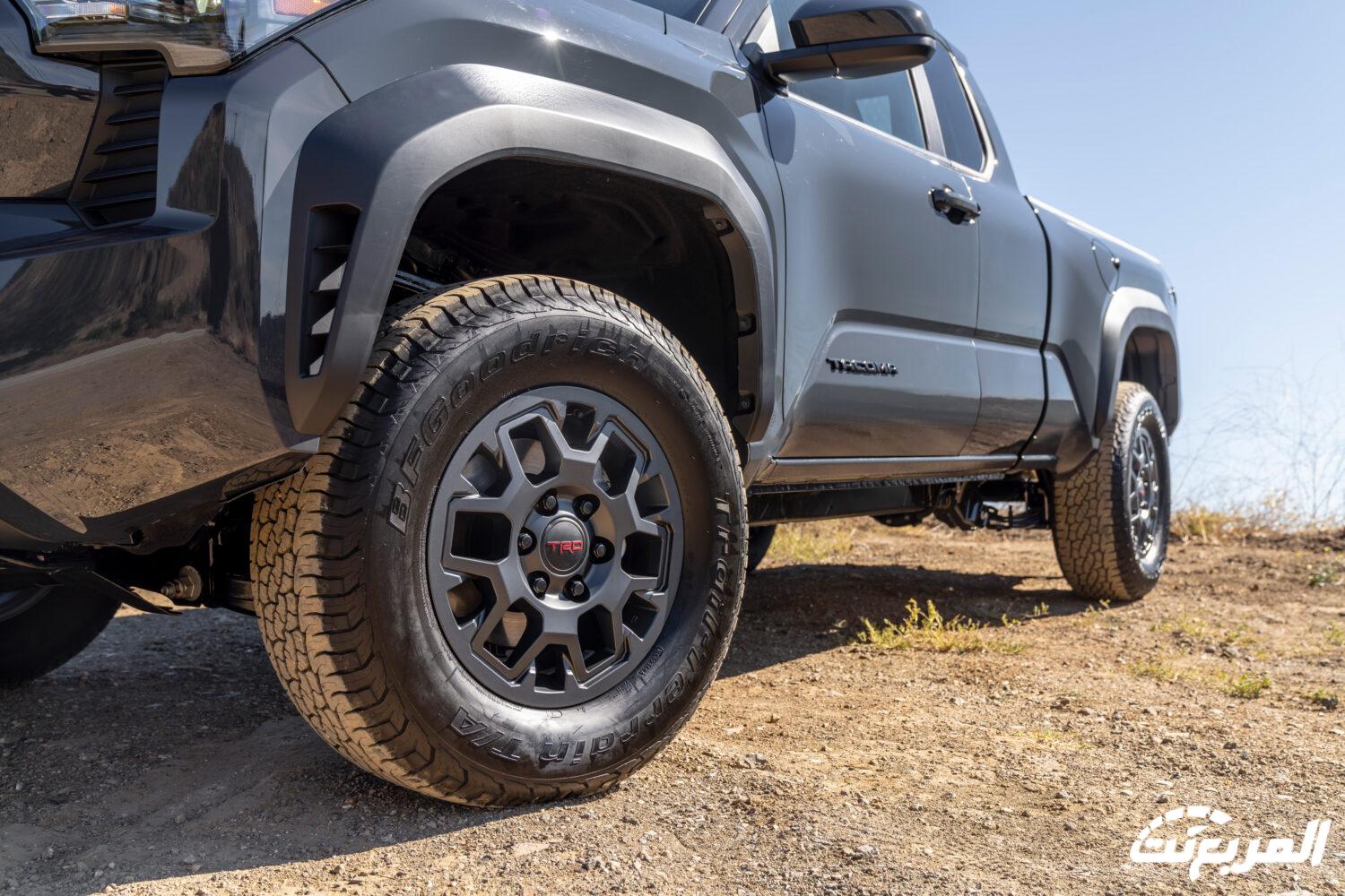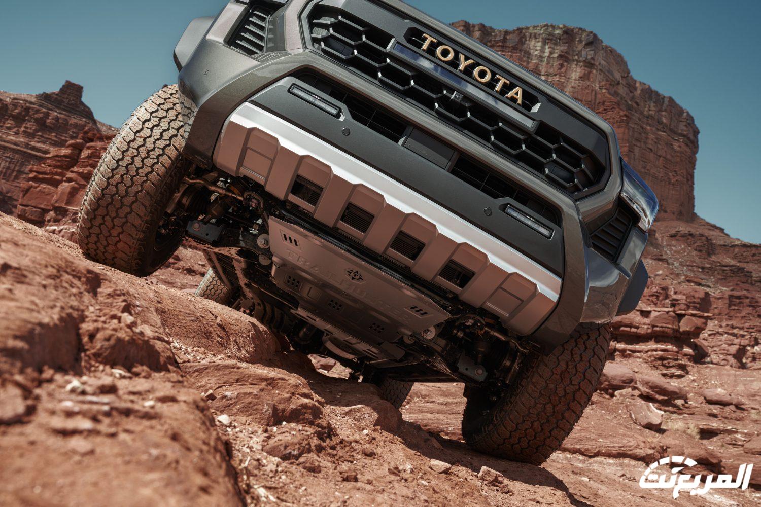 بالإضافة إلى منصة البناء الحديثة حصلت فئات تويوتا تاكوما 2024 الرياضية على أنظمة تعليق رياضية للطرق الوعرة مع قدرات عالية الأداء وإطارات كبيرة بقياس يصل إلى 33 إنش، مع إمكانية عرض العقبات أسفل الشاحنة على شاشة نظام المعلومات الترفيهية الجديدة بالداخلية.