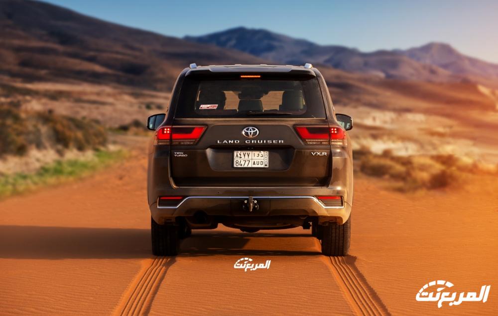 ومن الخلف، فإن السيارة تبدو بالمظهر الفاخر أيضًا والذي يوحي بالقوة التي تعطيها السيارة، حيث جاءت بمصابيح خلفية تعمل بتقنية الـ “LED” مع إشارات الانعطاف الخلفية التتابعية، ورذاذ ماء للكاميرا الخلفية، فضلا عن وجود الجناح الخلفي البارز أمامكم في صور تويوتا لاندكروزر 2024، مع وجود خطاف خلفي لجر العربات.