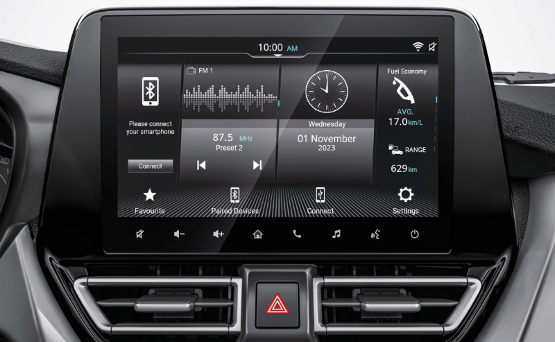 هناك شاشة أخرى تتخصص في عرض العدادت ومقاسها 4.2 بوصة، لكي تتخصص في بيان المعلومات التي تدور حول الرحلة، وبالانتقال إلى النظام الصوتي فيتكون من أربع سماعات، مع الوضع بالاعتبار أن السيارة تتزود بمُكبرين للصوت، مع خاصية عرض البيانات على شاشة العرض بالزجاج الأمامي، وعلى سبيل المثال قد تظهر عليها سرعة السيارة.