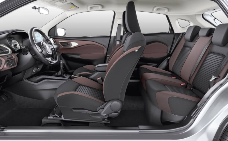 تتسع داخلية السيارة لعدد 5 مقاعد وفيما يرتبط بالمواد المُستخدمة فالمقاعد بكسوة من القماش، وقد لا تُعبر صور سوزوكي فرونكس 2024 عن أبرز الاختلافات الموجودة بالداخلية على مستوى الفئتين، ولكنها تظهر بوضوح في الشاشة التي تتخصص في عرض النظام الترفيهي، فإما أن يُصبح مقاسها 7 أو 9 بوصة، وبدعم لنظامي أبل كار بلاي، وأندرويد أوتو.