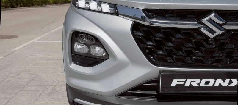 تمتد الخطوط البارزة على جوانب السيارة وفوق غطاء المحرك، مُضيفة إلى عنصر الانسيابية لخارجية السيارة، كما يتضح في صور سوزوكي فرونكس 2024 توسط شعار الصانع الياباني للمُقدمة، والشبك أمامي الكرومي باللون الأسود، وبالتوجه ناحية المصابيح الأمامية فهي عاملة بتقنية “LED”، وتأخذ التصميم النحيف إلى حد ما.