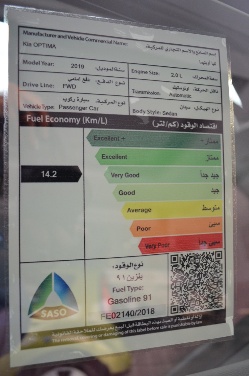تأتي سيدان كيا اوبتيما المتوسطة بمحرك 2.4 لتر بمعدل استهلاك 13.4 كم/لتر مع خيار آخر لمحرك 2 لتر بمعدل استهلاك 14.2 كم/لتر.