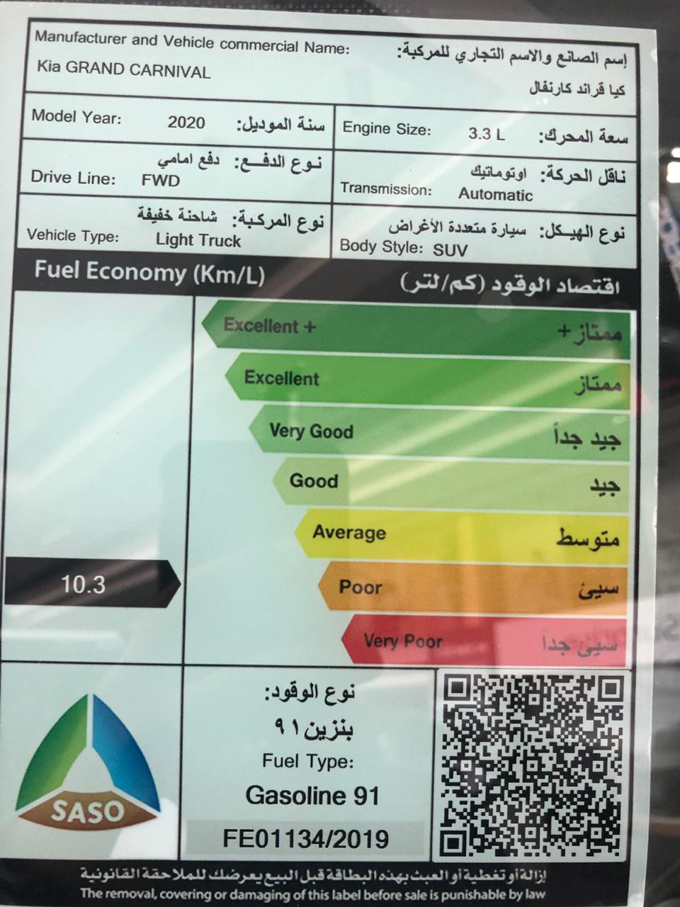 أما ميني فان كيا جراند كارنفال، فهي ذات محرك 3.3 لتر بصرفية وقود 10.3 كم/لتر.